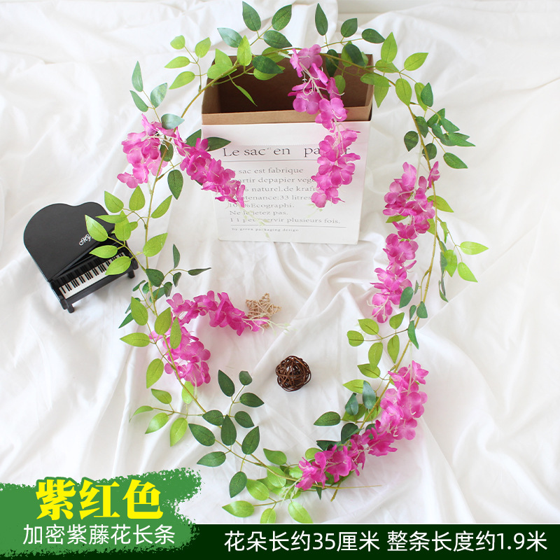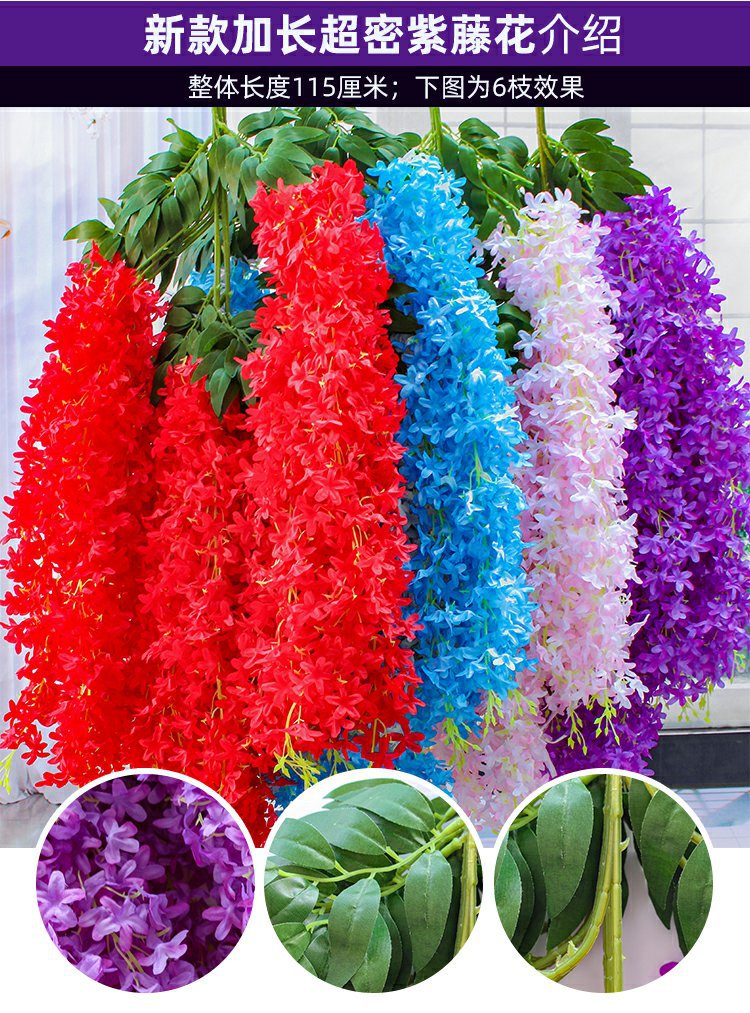 시뮬레이션 된 등나무 꽃 콩 꽃 문자열 보라색 플라스틱 실크 꽃 장식 덩굴 식물 천장 꽃 결혼식 가짜 꽃 등나무