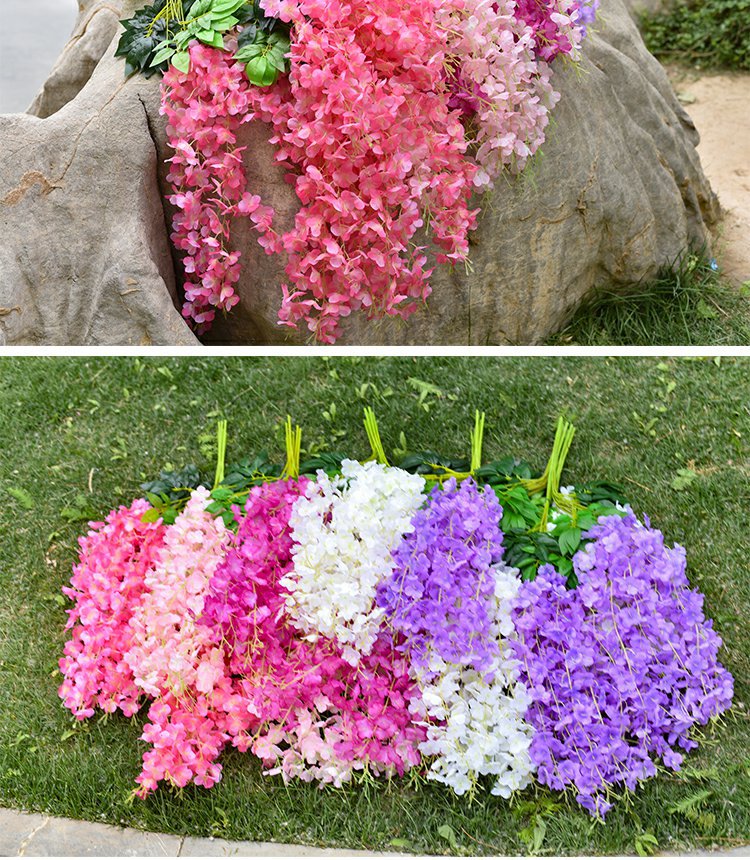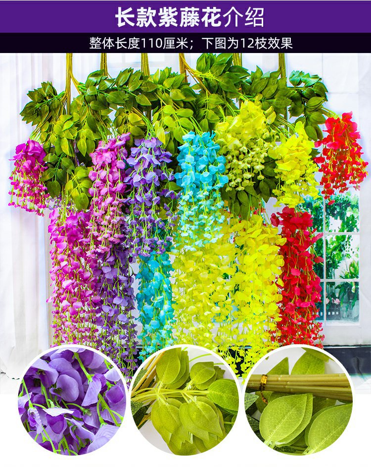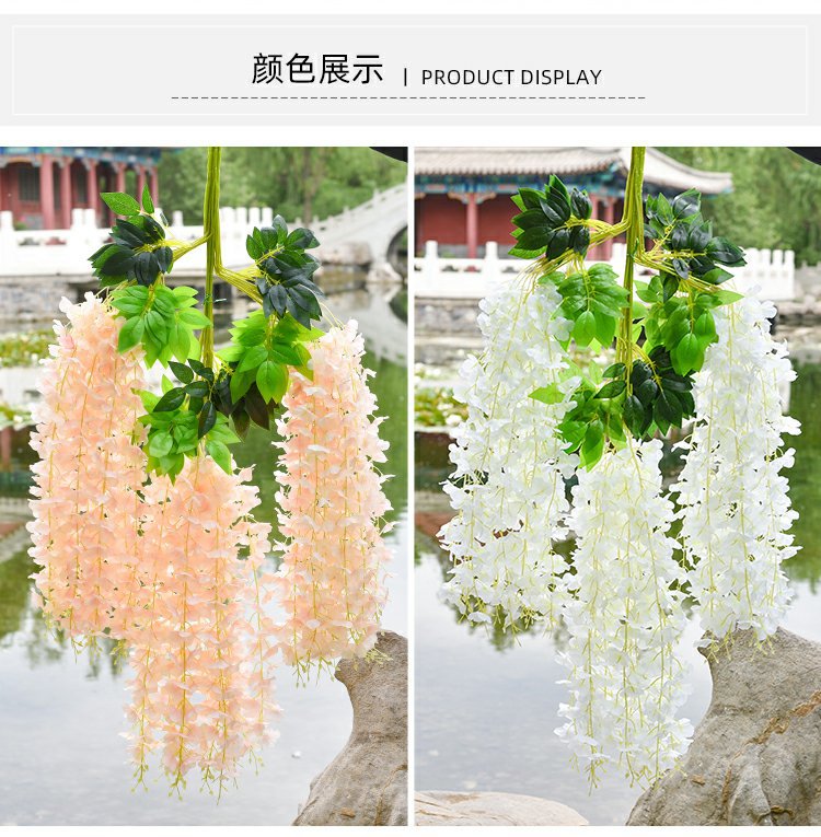 시뮬레이션 된 등나무 꽃 콩 꽃 문자열 보라색 플라스틱 실크 꽃 장식 덩굴 식물 천장 꽃 결혼식 가짜 꽃 등나무스토어 가기