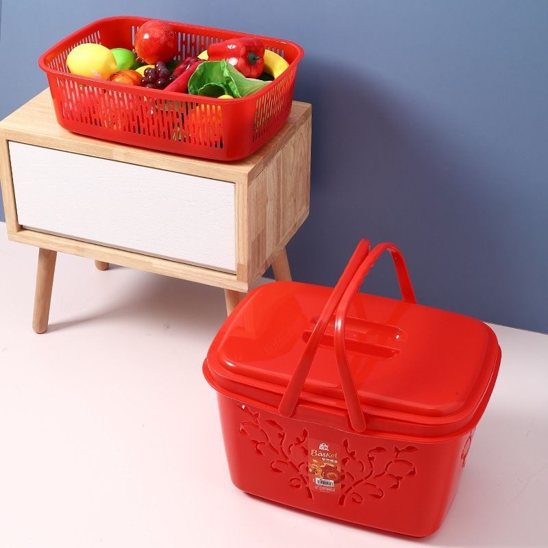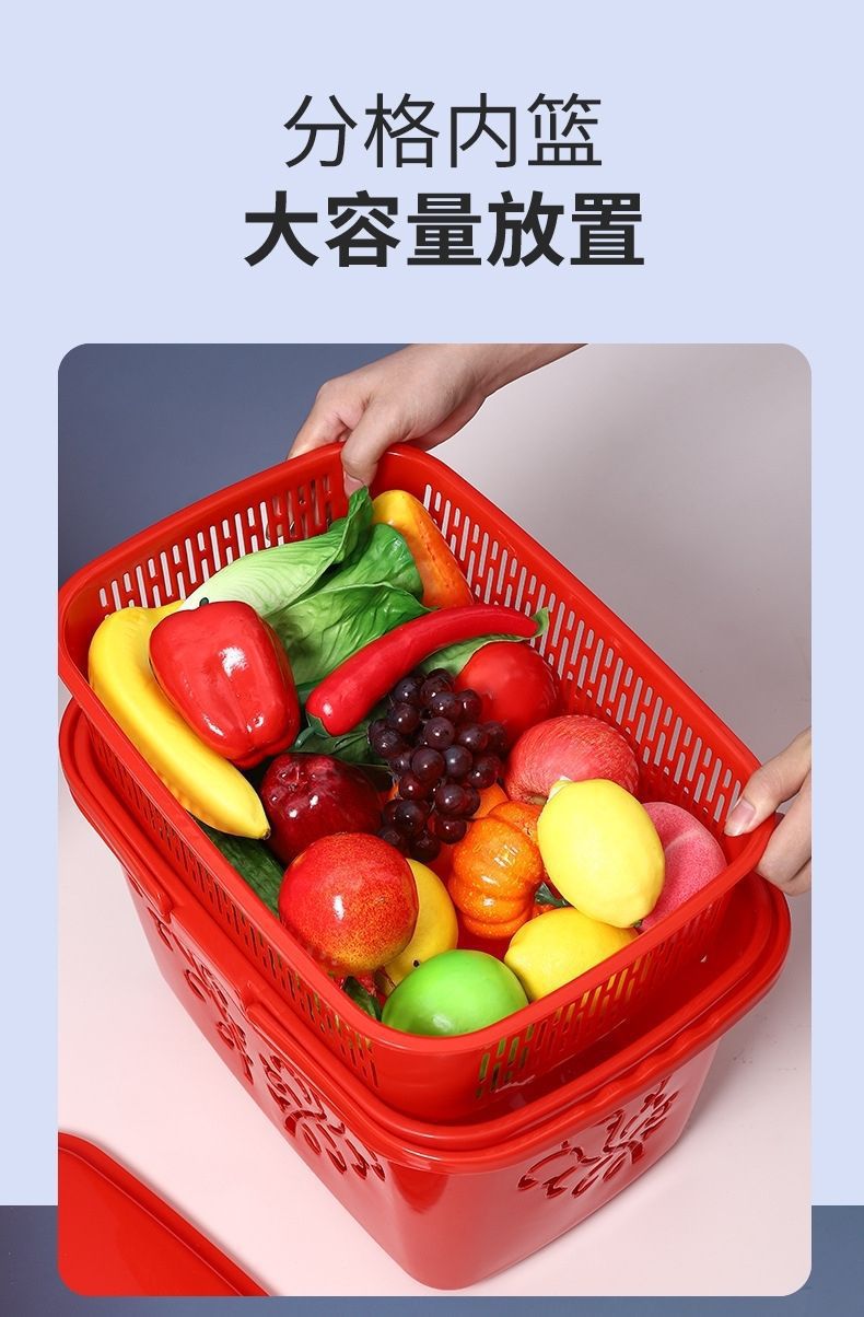 플라스틱 프레임 직사각형 커버 쇼핑 바구니 2층 대형 바구니 블루 슈퍼마켓 쇼핑 바구니 플라스틱 바구니 휴대용 바구니