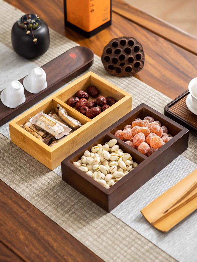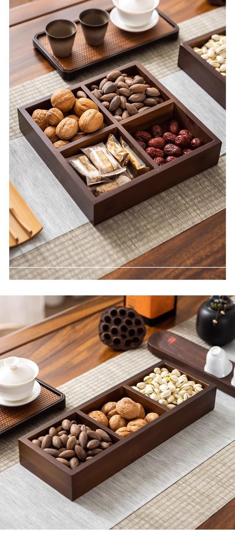 새로운 스타일의 차 트레이, 과일 트레이, 스낵 트레이, 디저트 트레이, 4각형 그리드, 나무 9각형 그리드, 가정용 건조 과일 트레이