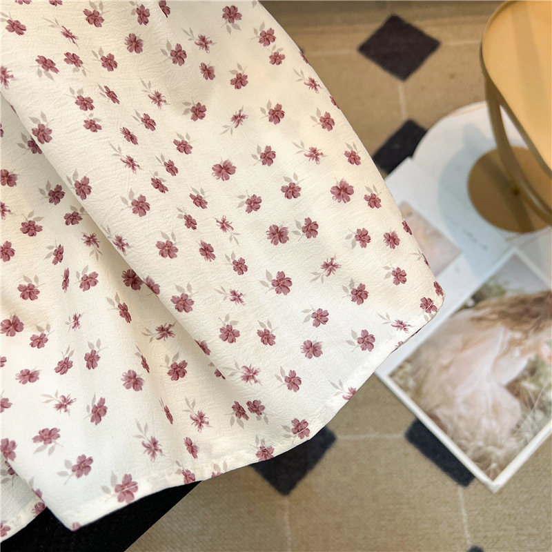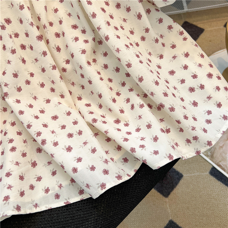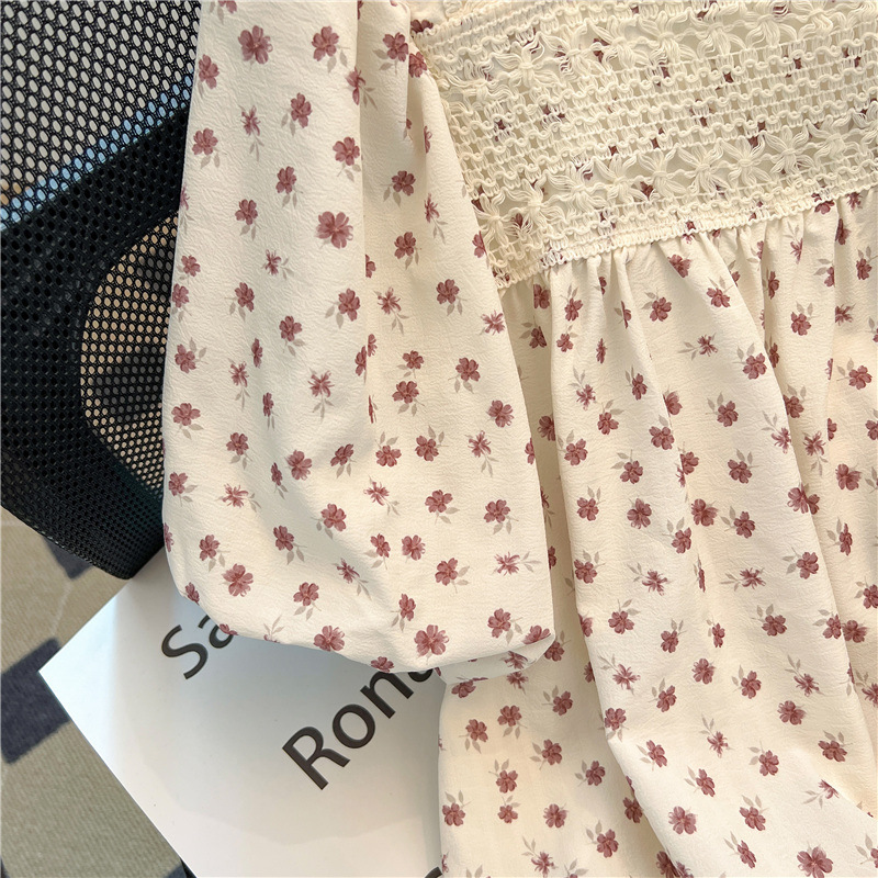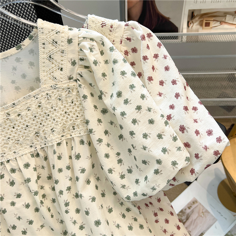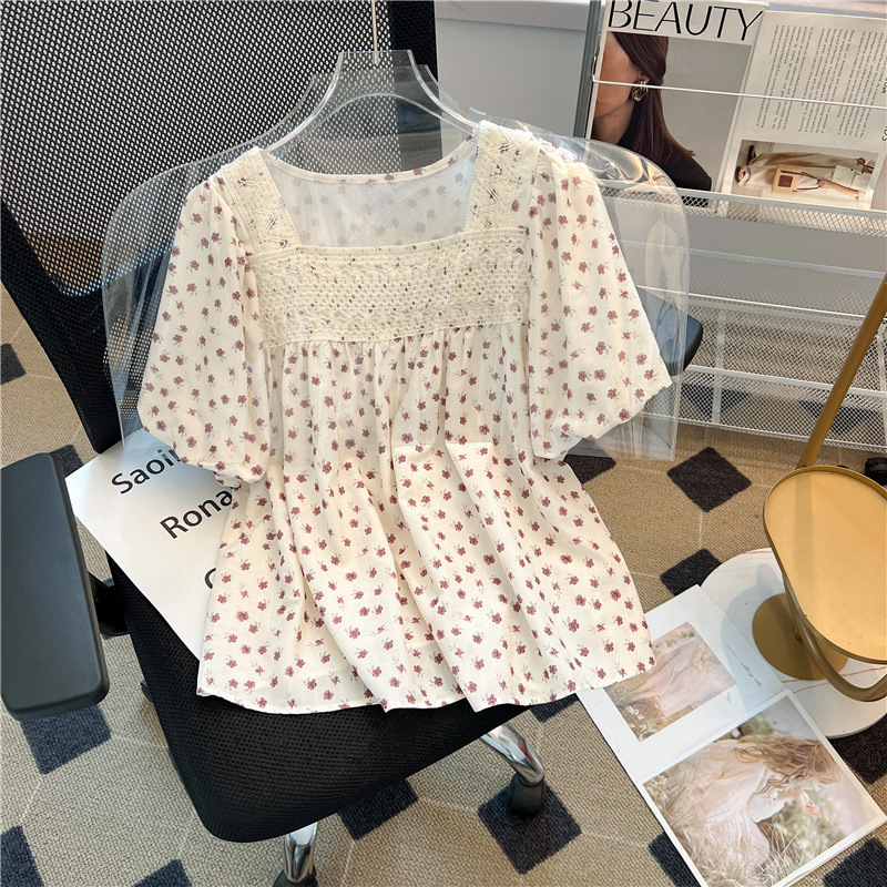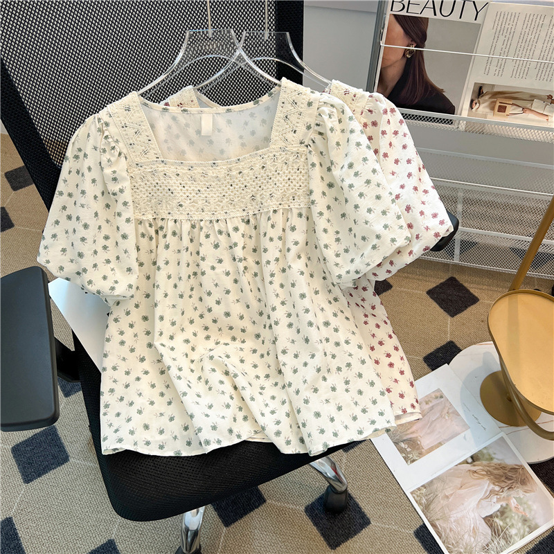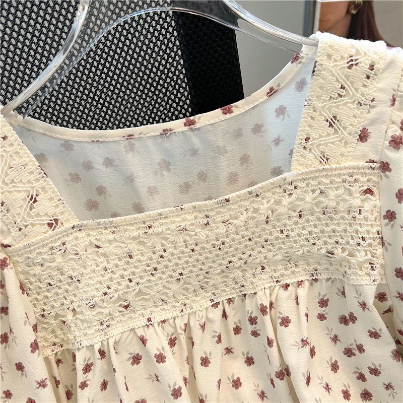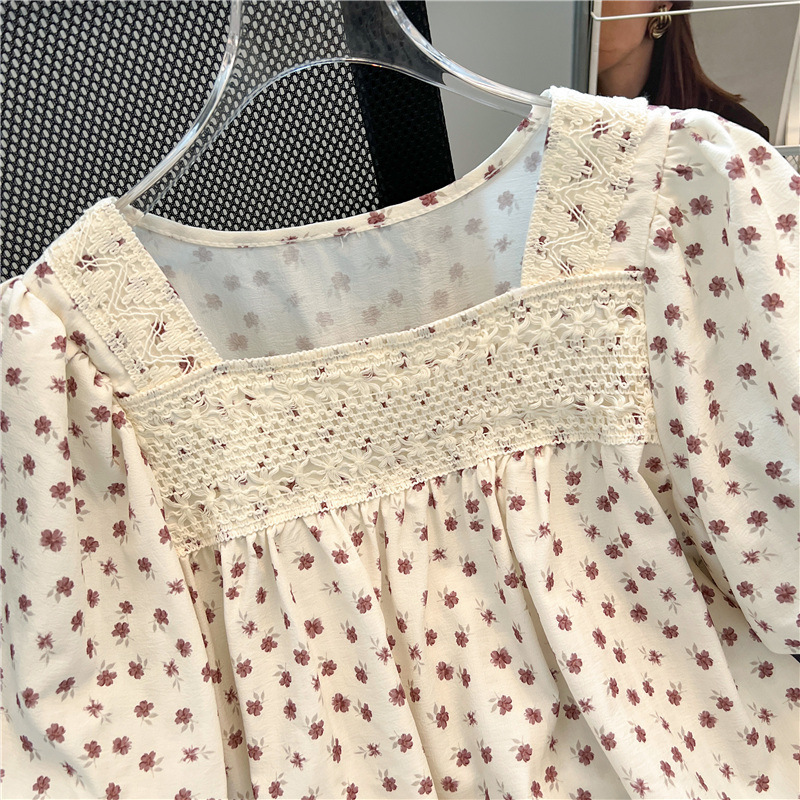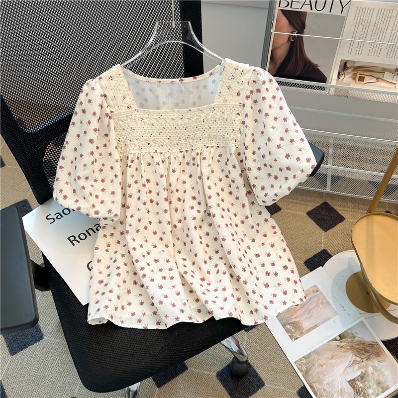 여성을위한 프렌치 플로럴 퍼프 슬리브 쉬폰 셔츠 여름 2025 루즈 배 커버 인형 셔츠 스위트 스퀘어 넥 탑