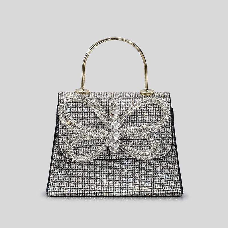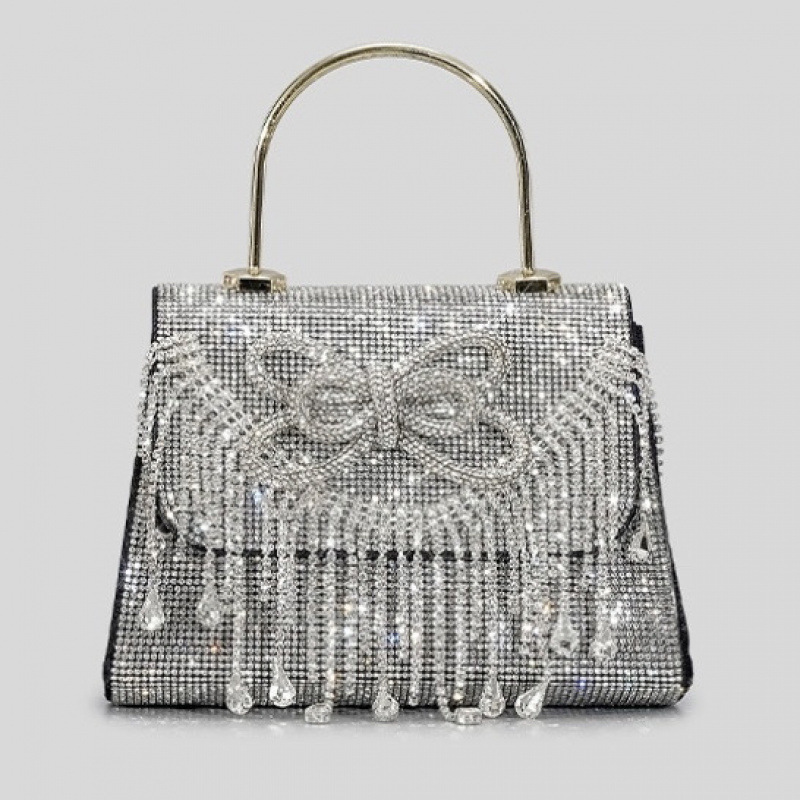 여성을위한 하이 엔드 핫 다이아몬드 보우 라인 석 핸드백 블링 이브닝 백 금속 플랩 숄더 크로스 바디 백