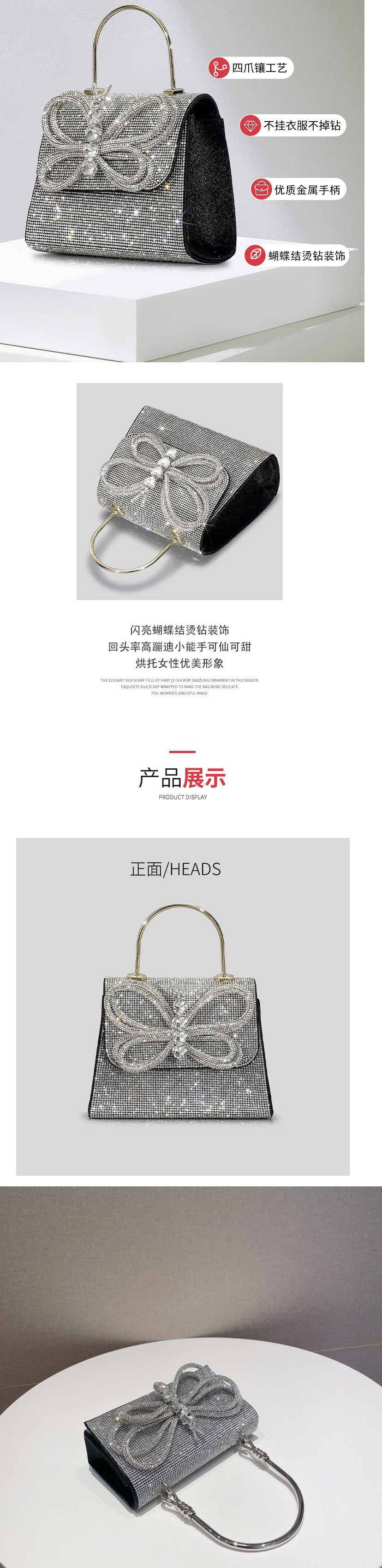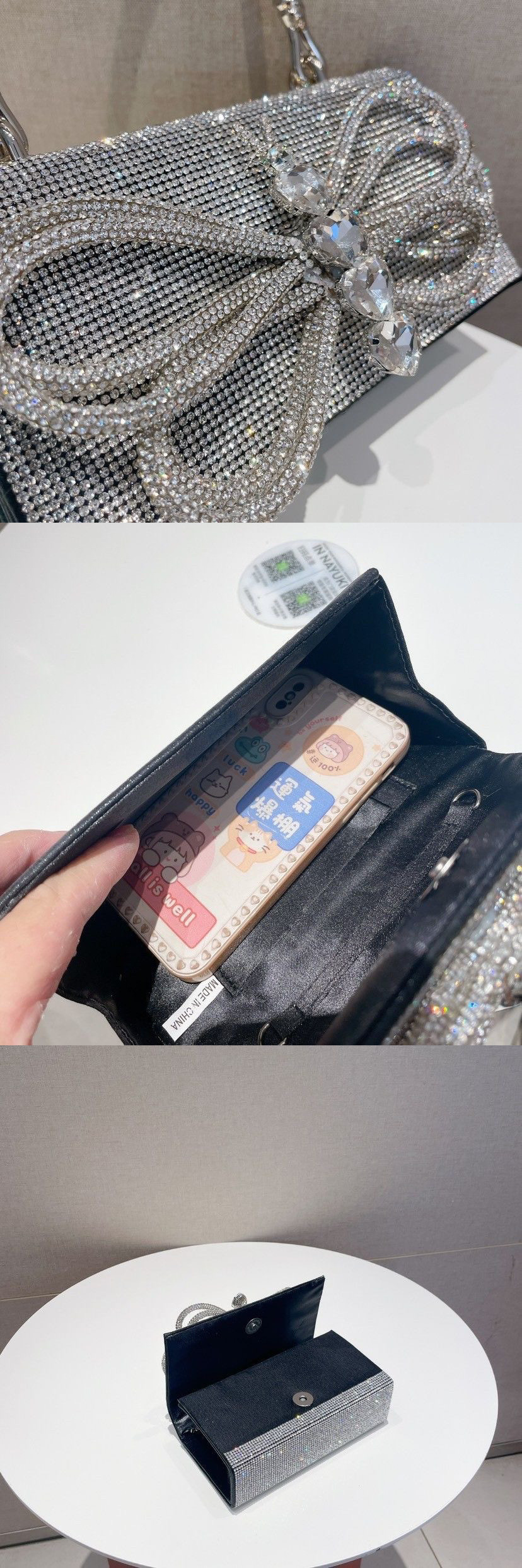 여성을위한 하이 엔드 핫 다이아몬드 보우 라인 석 핸드백 블링 이브닝 백 금속 플랩 숄더 크로스 바디 백스토어 가기