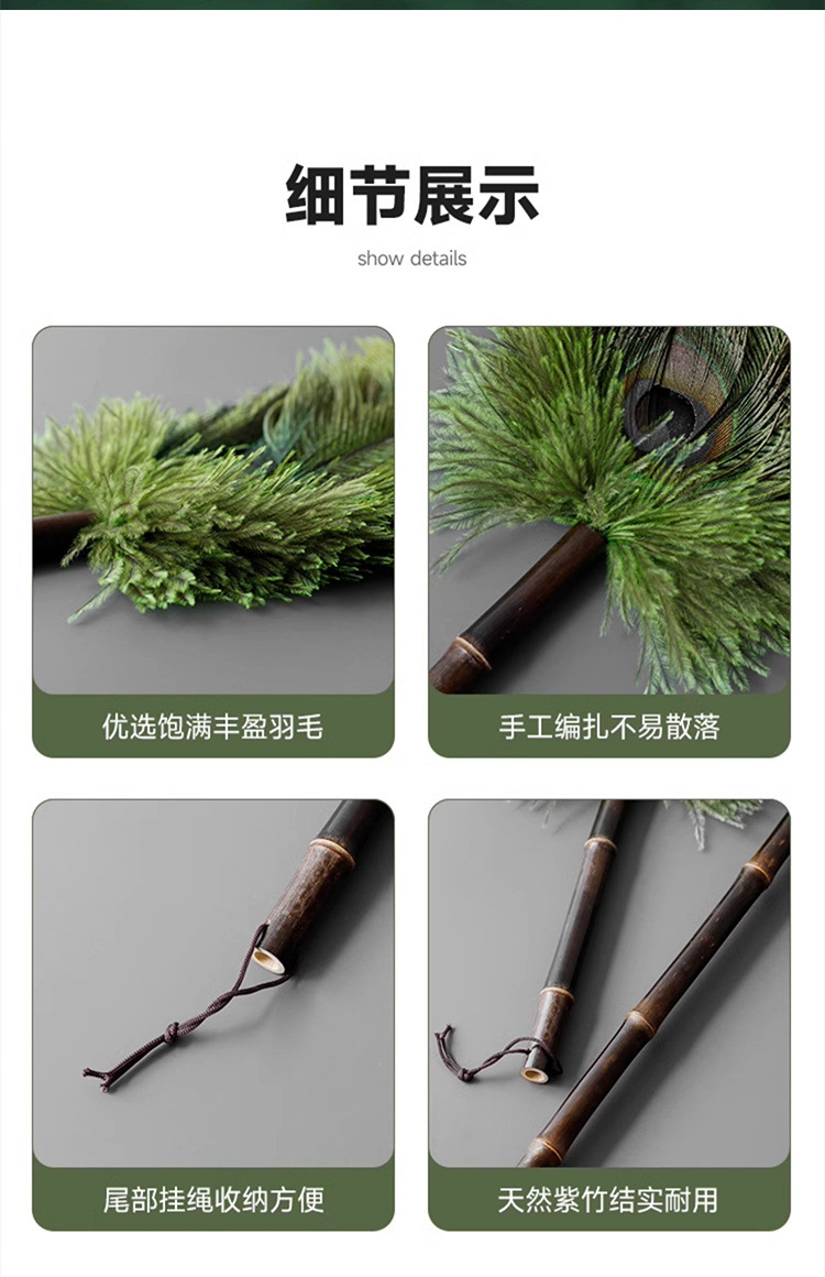 • 보라색 대나무 손잡이 타조 깃털 공작 먼지떨이(중형)