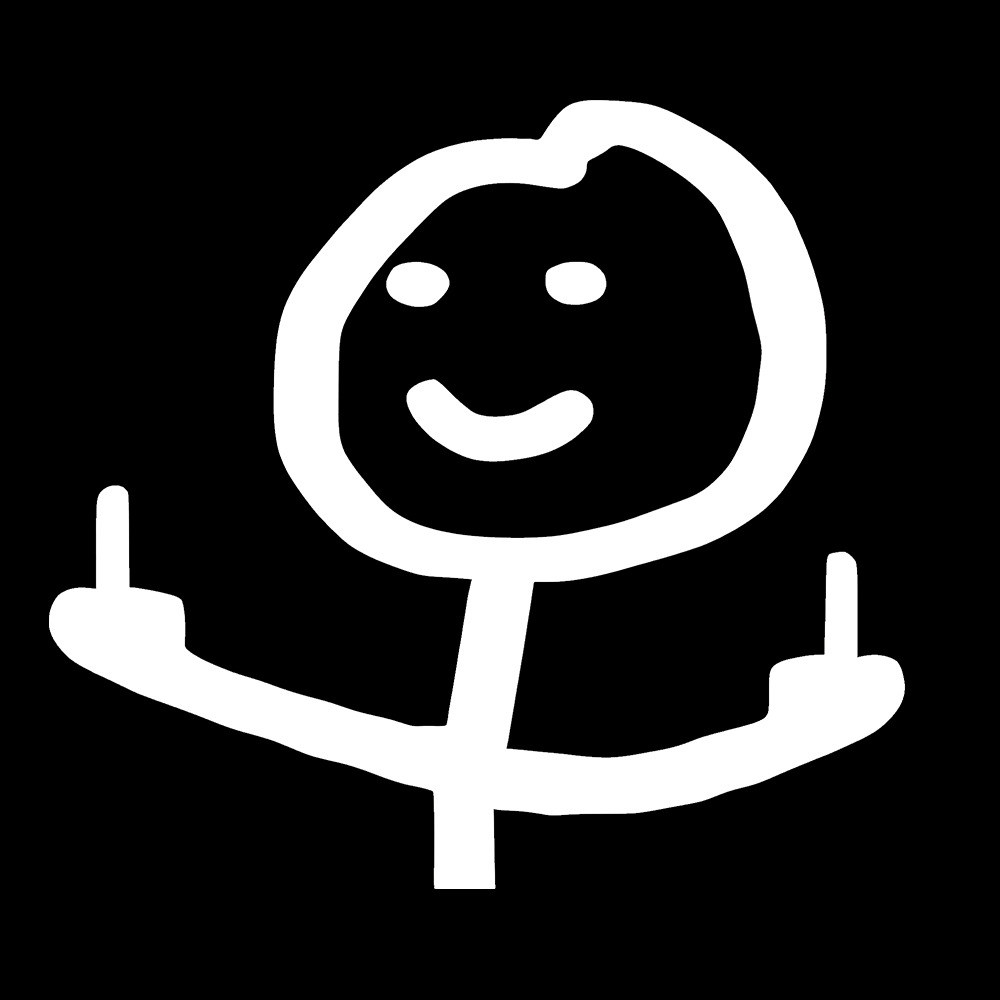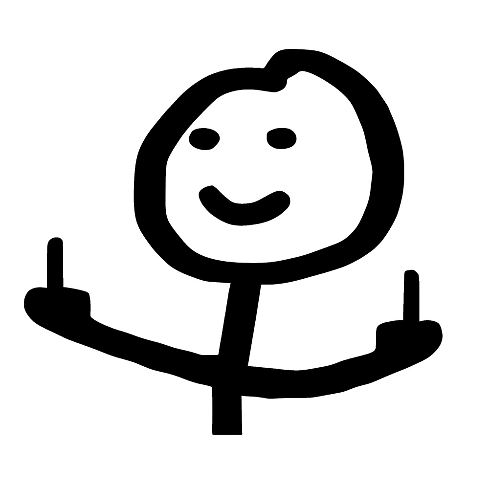 창의적이고 흥미로운 스틱맨은 낙서 악마의 웃는 얼굴과 손을 치고 자동차 창문 유리에 재미있는 스티커를 투척합니다.