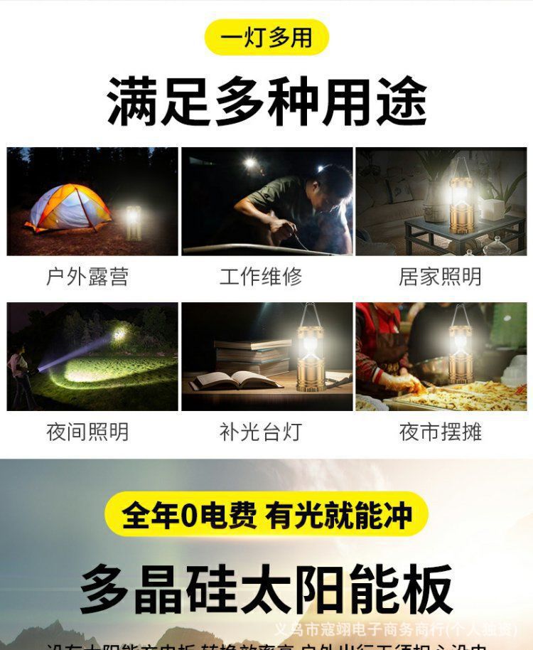 국경 간 새로운 다기능 캠핑 조명 야외 캠프 조명 휴대용 분위기 조명 작업 조명 손전등스토어 가기