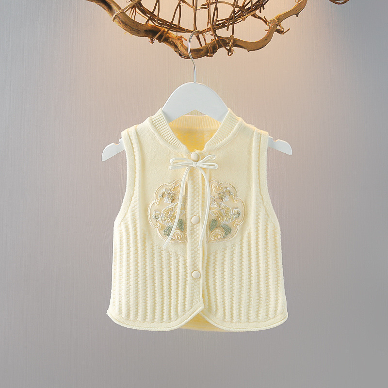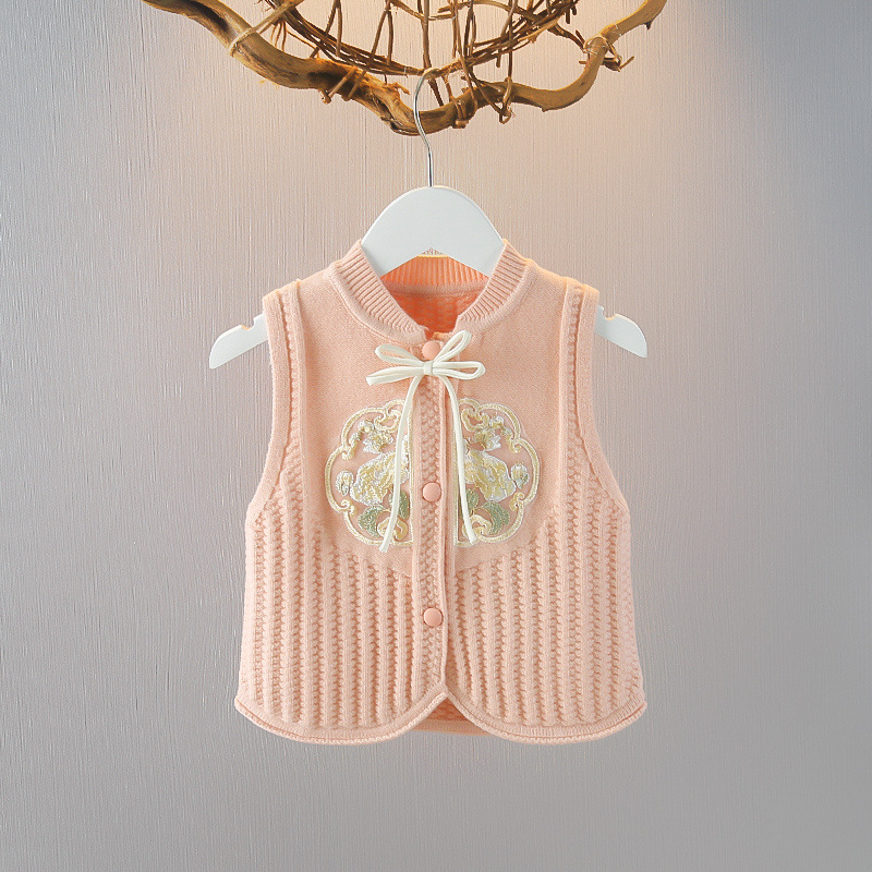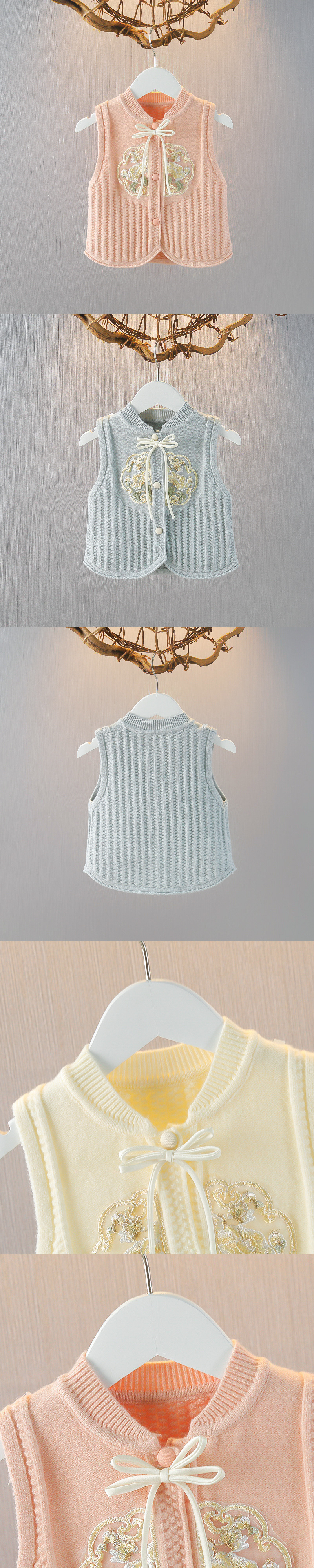 여자 조끼 봄과 가을 2024 새로운 어린이 니트 조끼 가을 어린이 양복 조끼 가을 아기 소녀 조끼스토어 가기