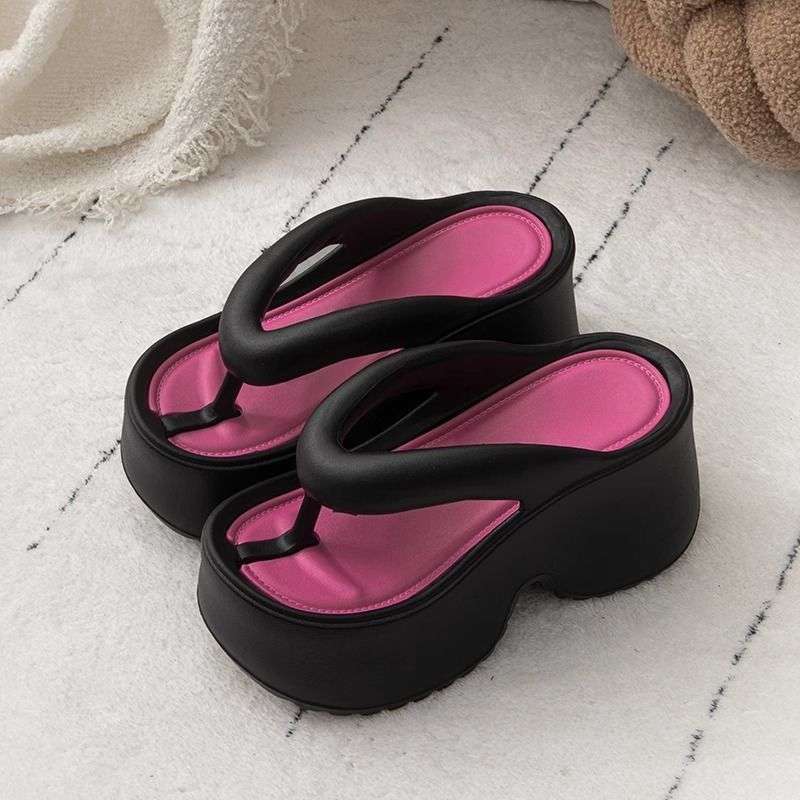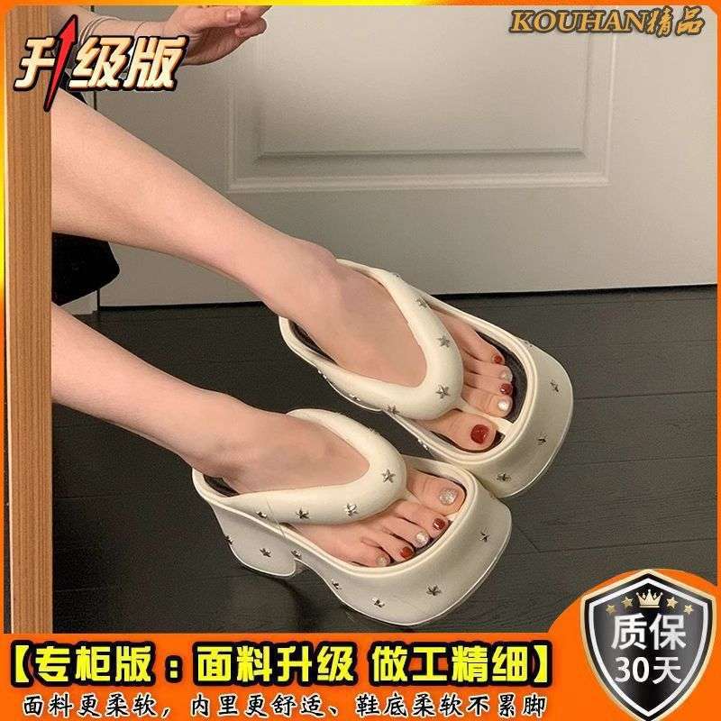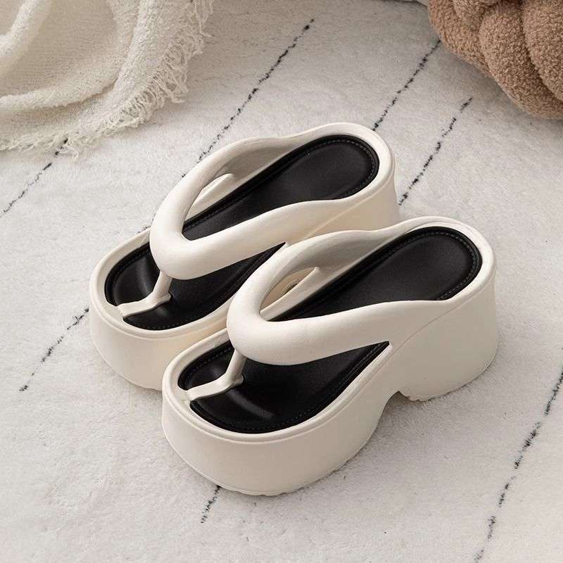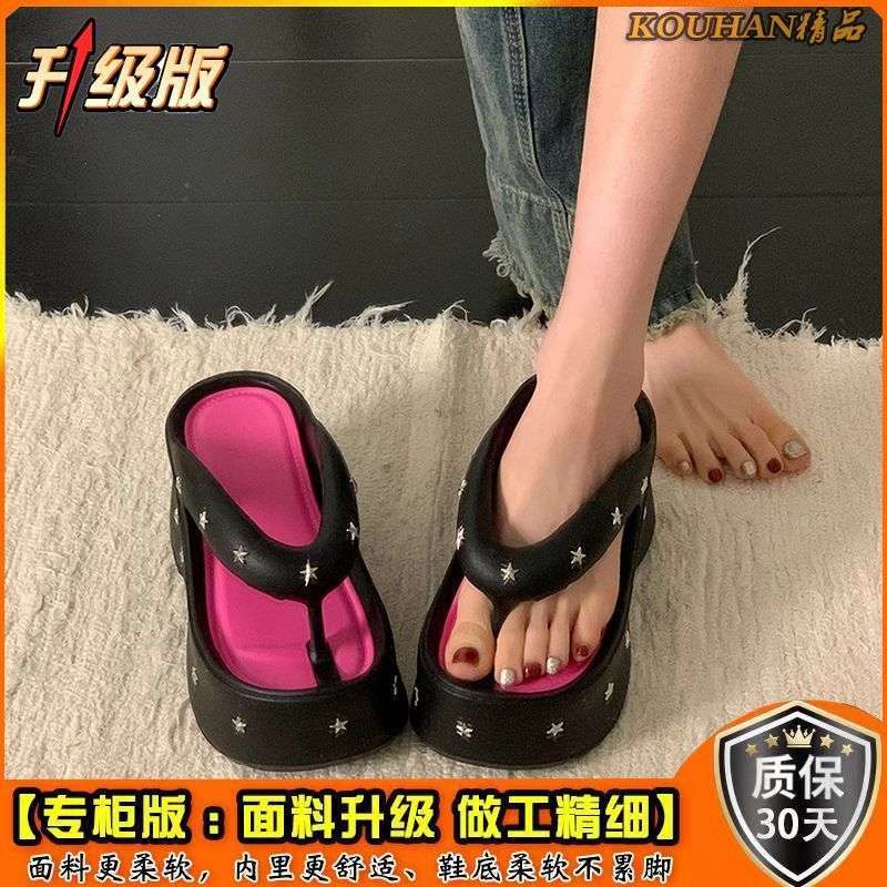 여름 아우터로 입기 좋은 여성용 두꺼운 밑창 슬리퍼 2025 신상 하이힐 슬리퍼, 작은 사람들을 위한 키높이 해변 비치 슈즈
