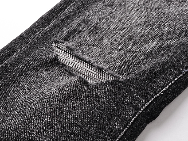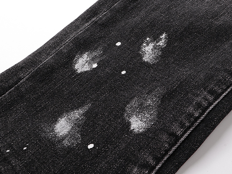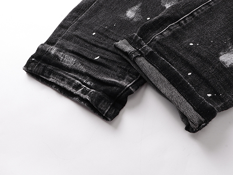 Am 하이 스트리트 찢어진 슬림핏 스몰 피트 스트레치 청바지 스플래시 잉크 아미 루즈 스트레이트 퍼플 데님 바지 남성용