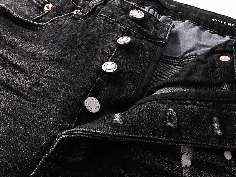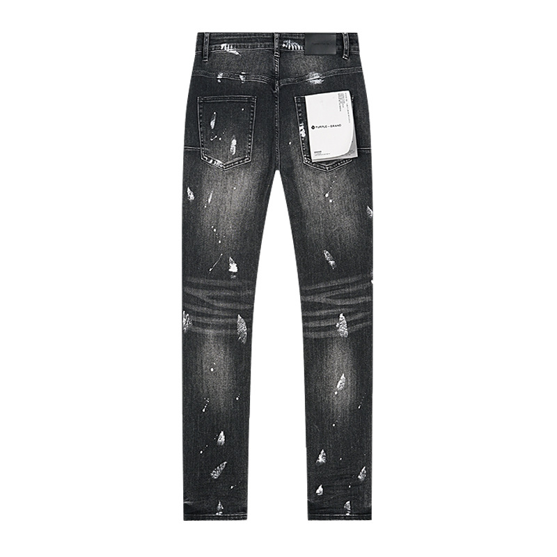 Am 하이 스트리트 찢어진 슬림핏 스몰 피트 스트레치 청바지 스플래시 잉크 아미 루즈 스트레이트 퍼플 데님 바지 남성용스토어 가기