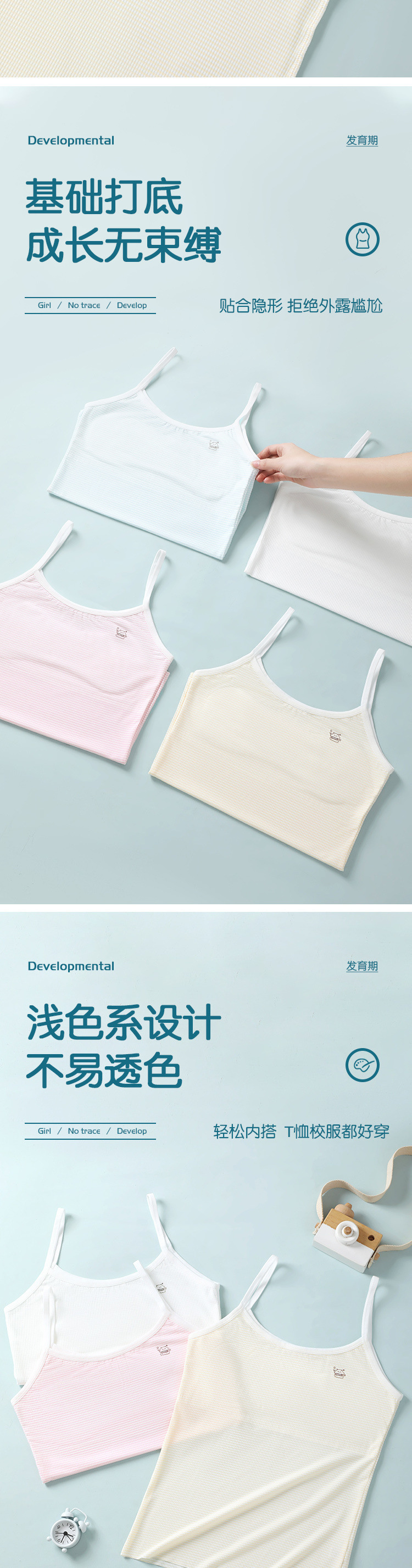 아동 속옷 긴 발달기 초등학생 12세 소녀 브라 소녀 캐미솔