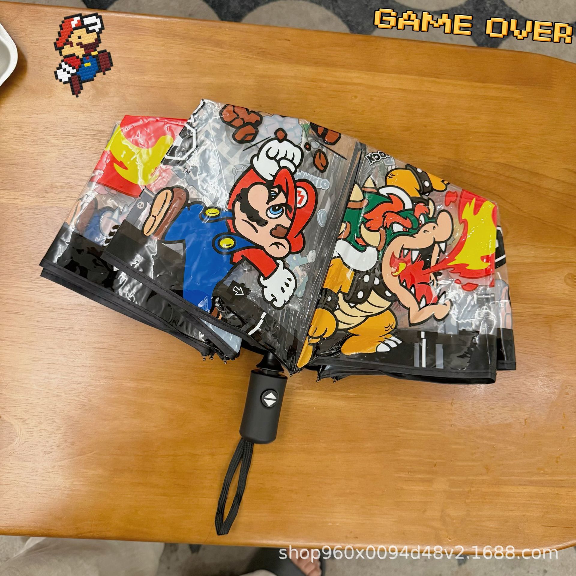 투명 우산 70% off 우산 자동 스트레이트 핸들 우산 여성 귀여운 접이식 학생 어린이 성인 슈퍼 마리오 마리오스토어 가기