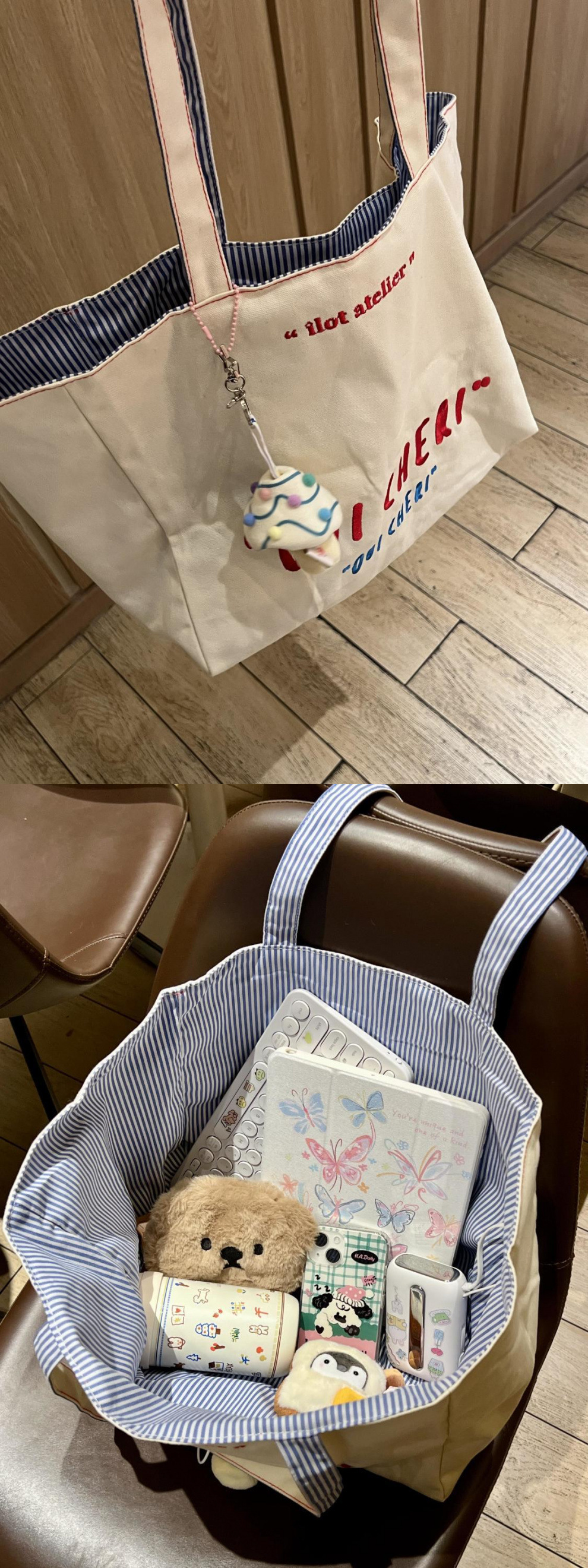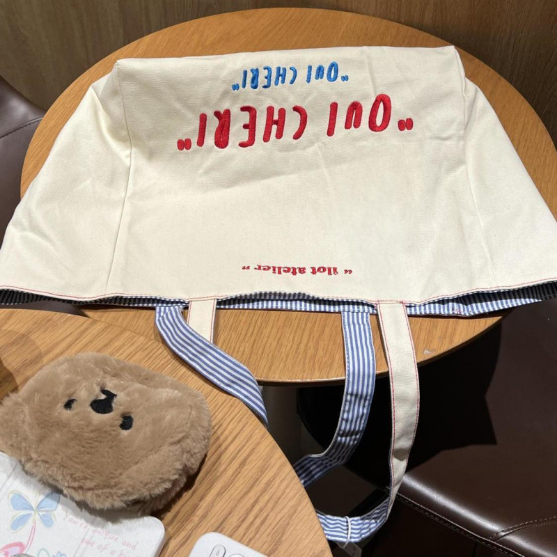 대용량 토트백, 앞뒤 양면 스트라이프 다용도 숄더백, 대학생 클래스 캔버스백, 여성 통근가방