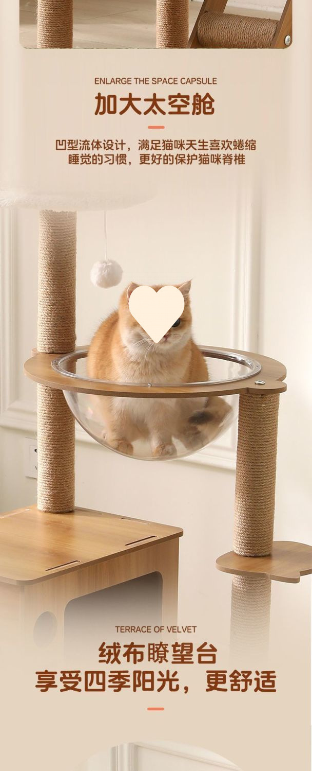 고양이 클라이밍 프레임, 우주 캡슐, 고양이 둥지, 고양이 트리, 일체형, 공간 절약형, 내마모성, 침실, 삼나무 고양이 스크래치 보드, 고양이 장난감, 고양이 빌라스토어 가기