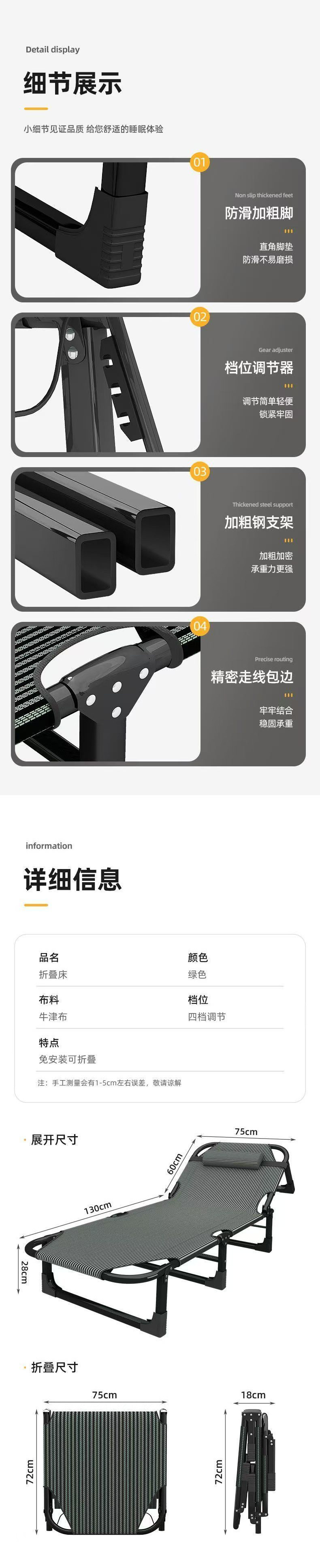 접이식 침대 싱글 침대 낮잠 가정용 간단한 낮잠 침대 동반자 휴대용 다기능 캠프 침대 사무실 병원스토어 가기