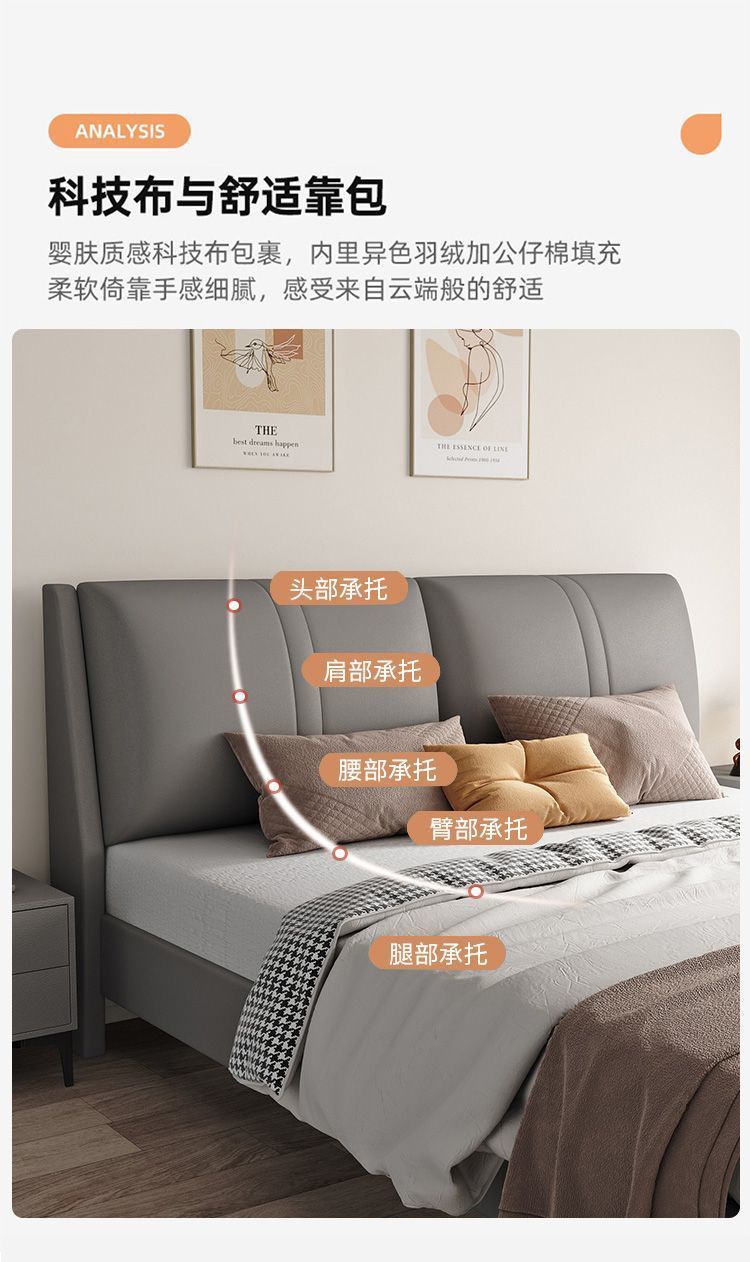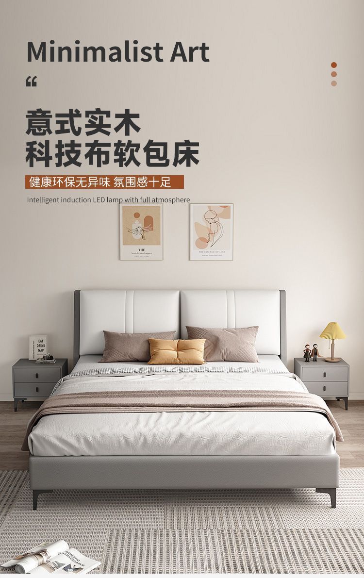 테크니컬 패브릭 원목 침대 심플 1.8m 마스터 침실 경제적인 더블 침대 소프트 패키지 홈 1.5m 싱글 침대 무역스토어 가기