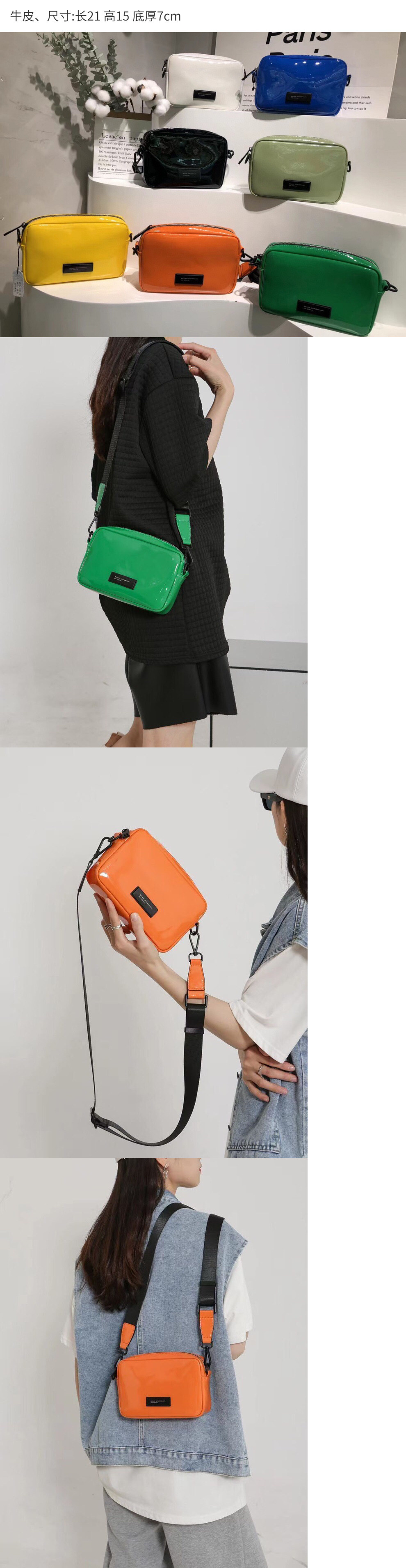 봄 여름 신작 다재다능한 고급 캔디 컬러 정품 가죽 작은 사각형 가방 캐주얼하고 심플한 한국식 싱글 숄더 크로스 바디 백