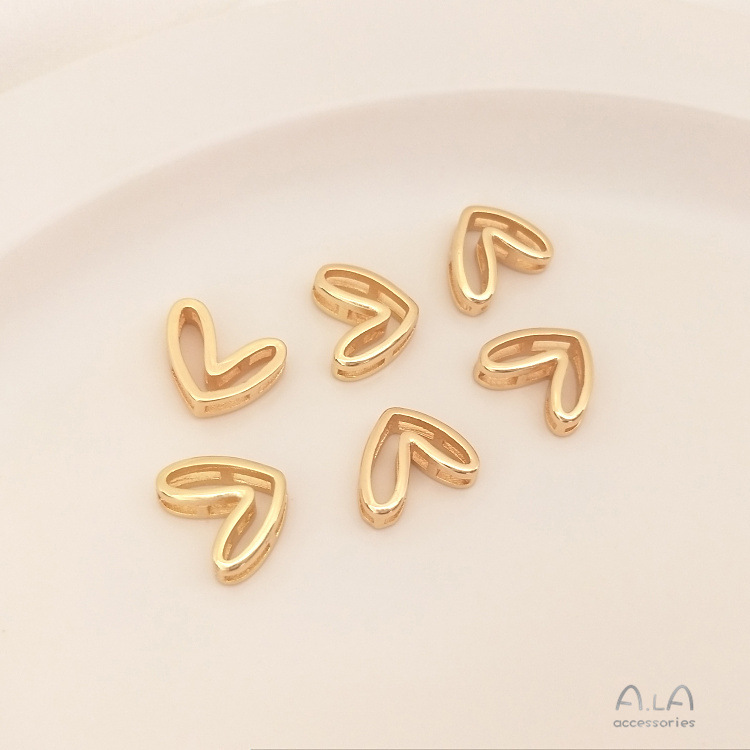 14K 금으로 채워진 색상 보존 광택 사랑 모양의 펜던트 중공 복숭아 심장 쇄골 체인 펜던트 diy 목걸이 귀걸이 액세서리