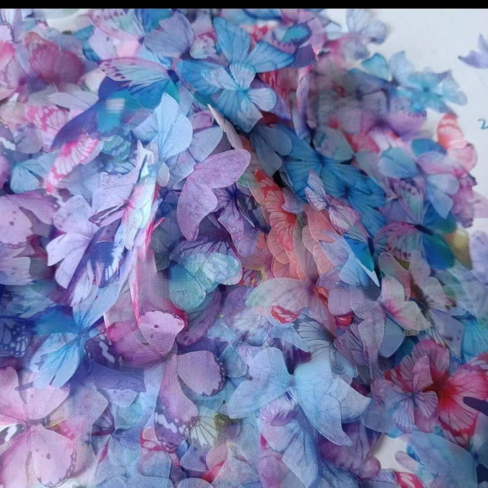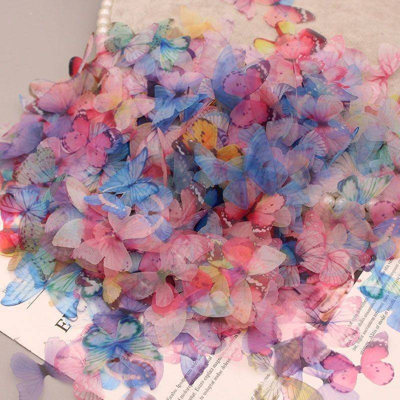 • 약 4cm의 얇은 명주 그물 나비 100개, 무료 접착제