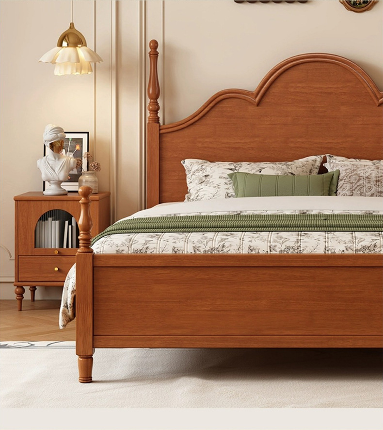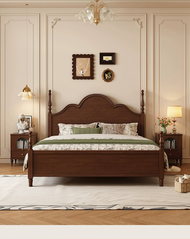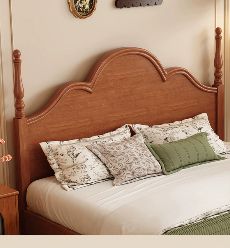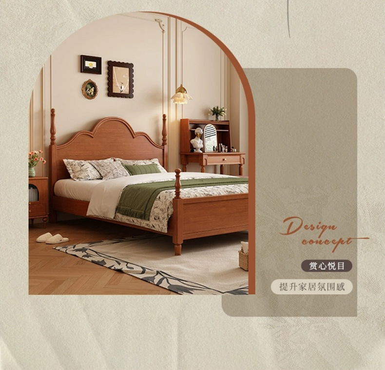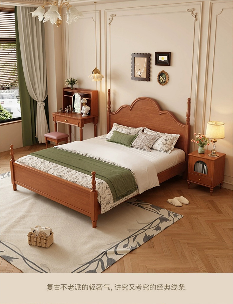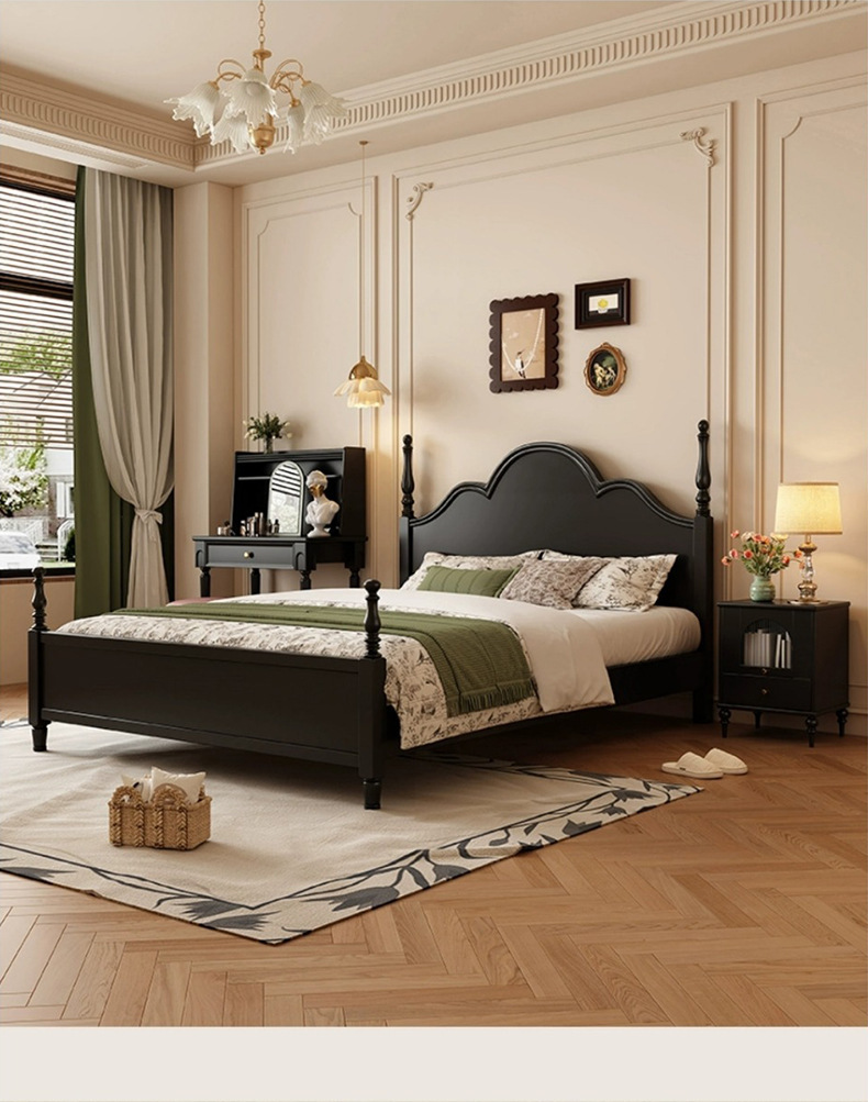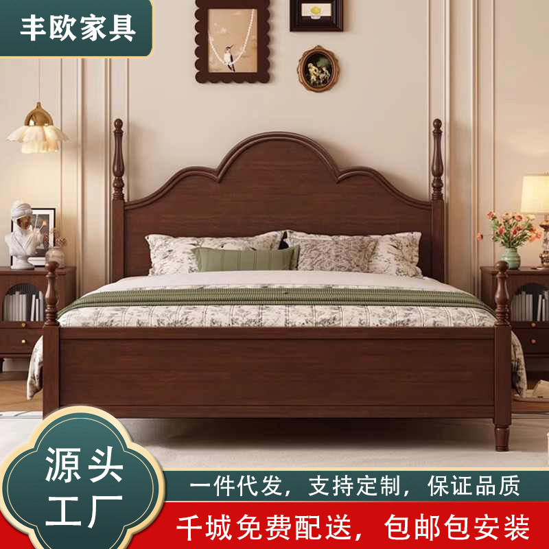 프랑스 복고풍 중세 스타일 1.8m 단단한 나무 침대 로마 기둥 검은 미국의 가벼운 럭셔리 마스터 침실 웨딩 침대 공주 침대스토어 가기