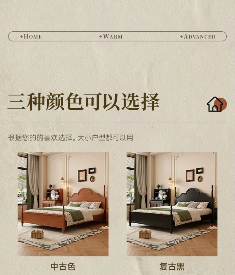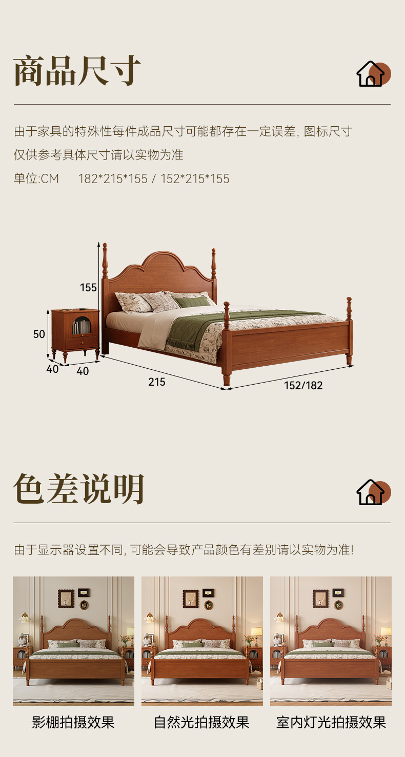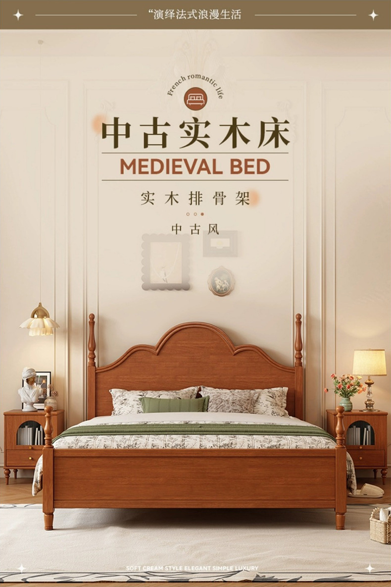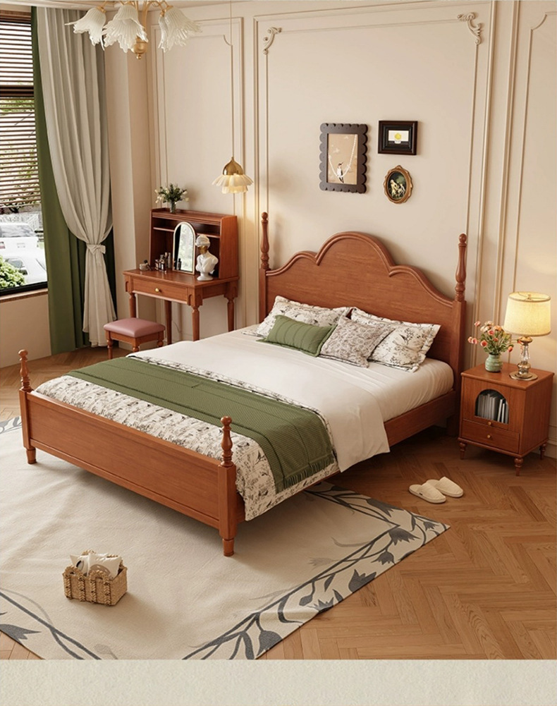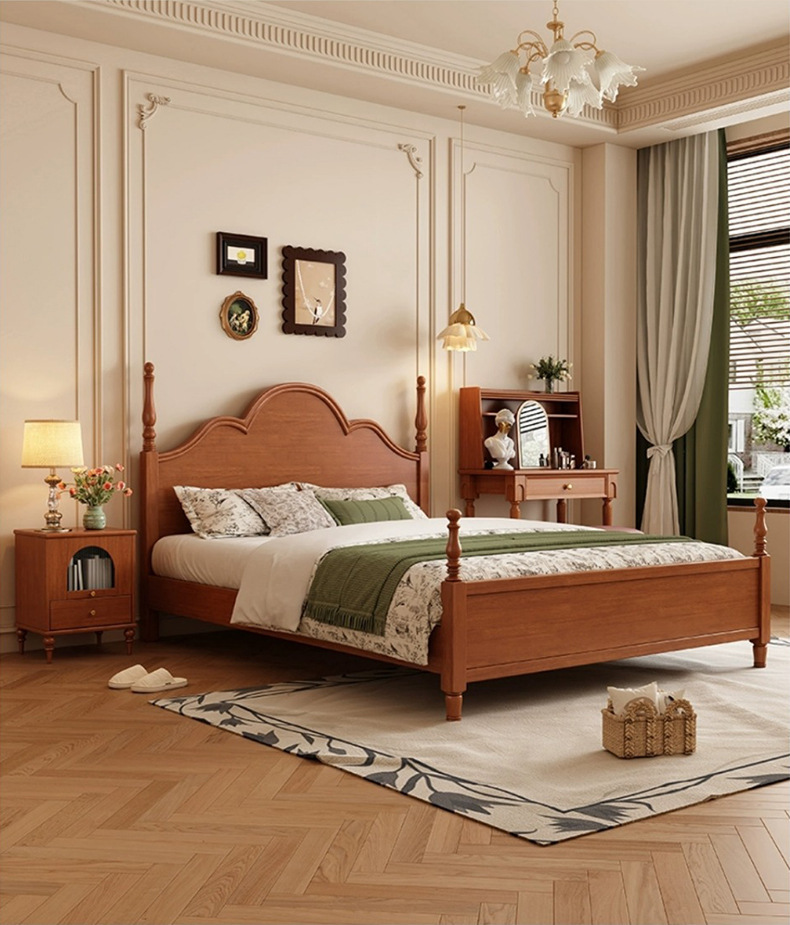 프랑스 복고풍 중세 스타일 1.8m 단단한 나무 침대 로마 기둥 검은 미국의 가벼운 럭셔리 마스터 침실 웨딩 침대 공주 침대스토어 가기