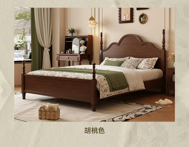 프랑스 복고풍 중세 스타일 1.8m 단단한 나무 침대 로마 기둥 검은 미국의 가벼운 럭셔리 마스터 침실 웨딩 침대 공주 침대