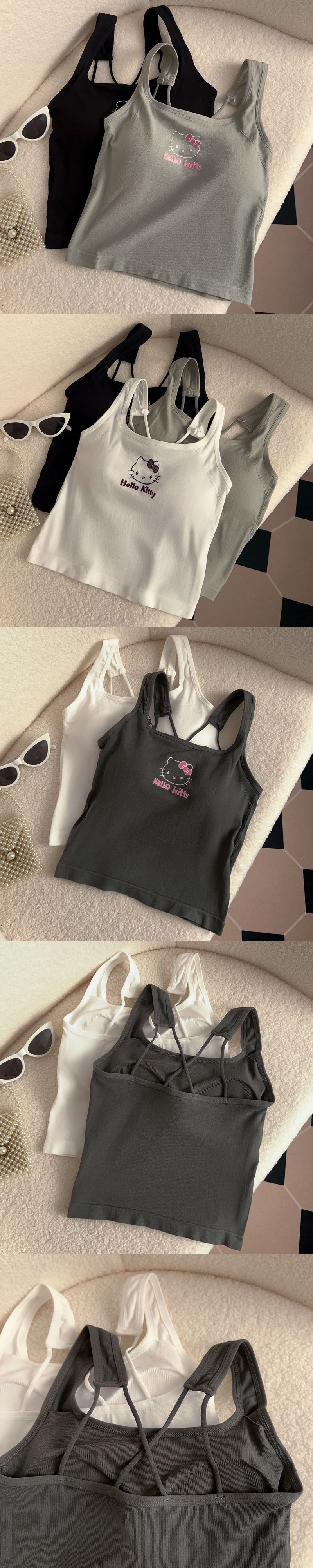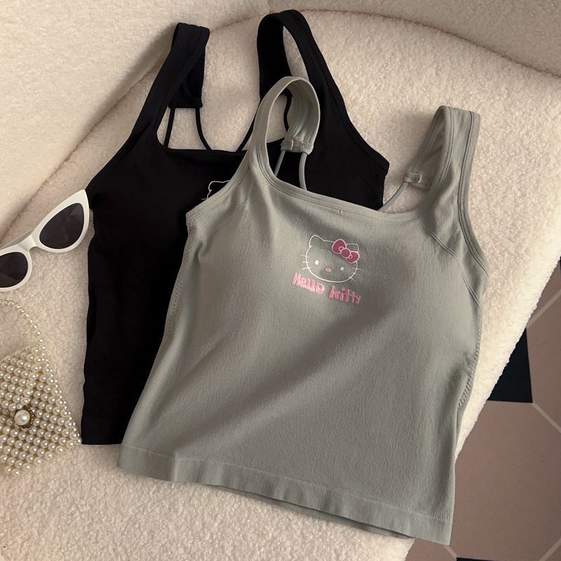 헬로키티 여성용 다용도 캐미솔 속옷, 가슴 패드 포함, 내부 및 외부 착용, 슬림 핫걸 퓨어 러스티 탑스토어 가기
