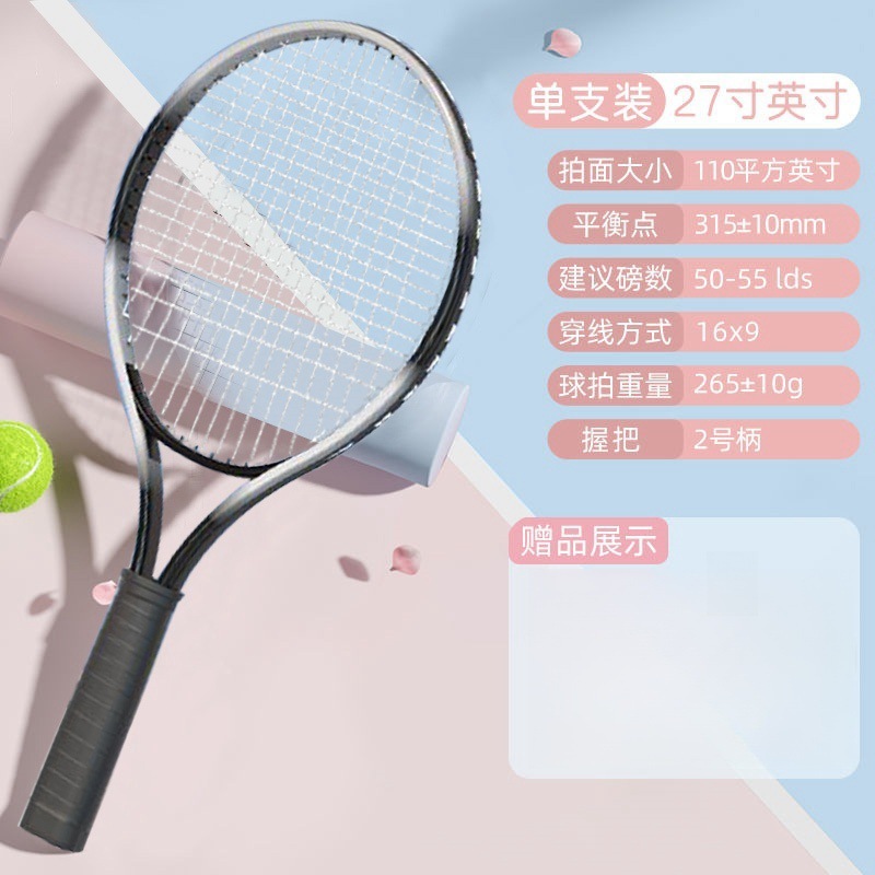• 싱글 다크 나이트 블랙(테니스공+라켓백+미끄럼 방지 핸드젤 포함) - 대학생 체육수업용 특수라켓 [잘못 구매 방지]
