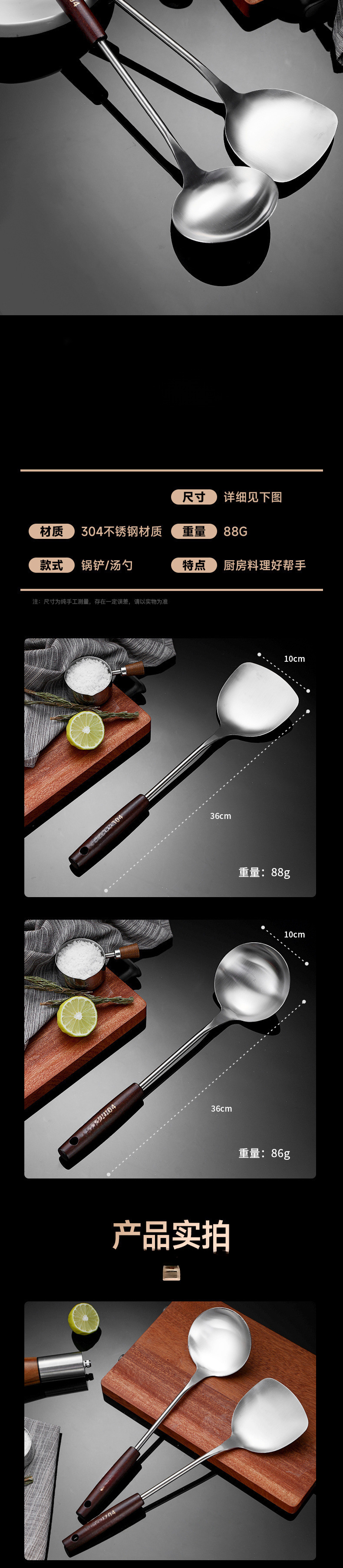 • 원목 손잡이 [주걱 + 수프 스푼] 304 스테인레스 스틸