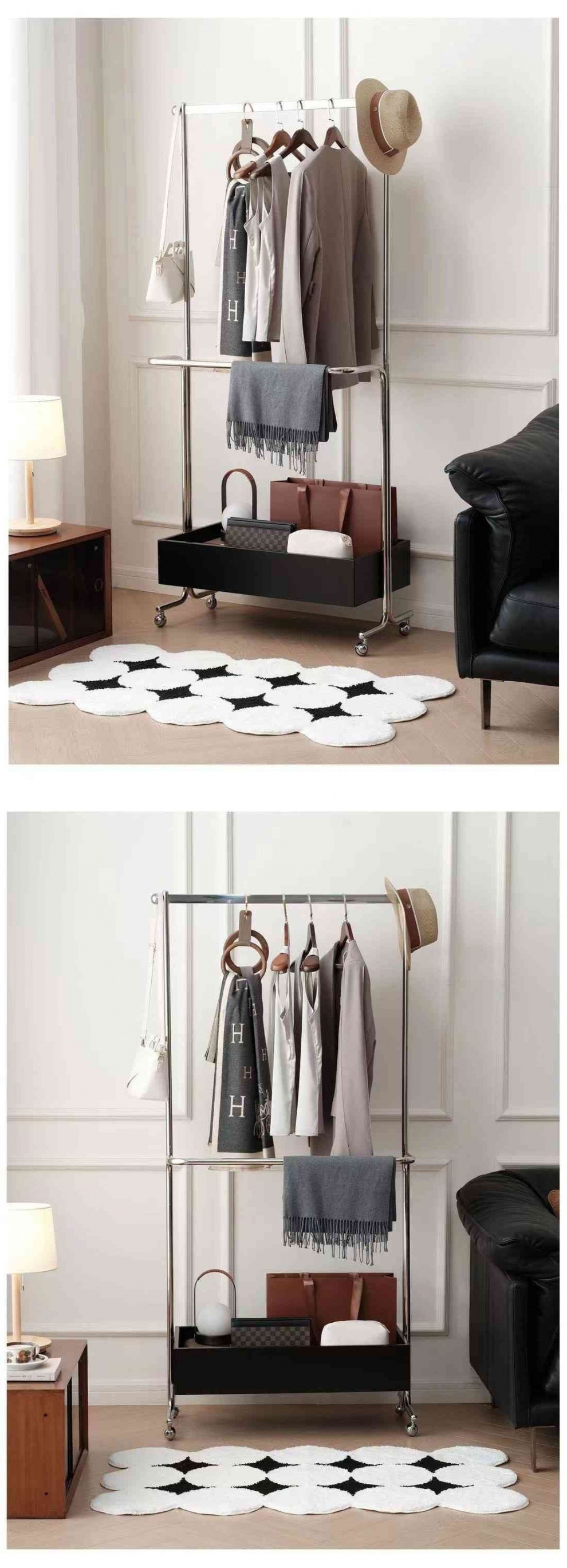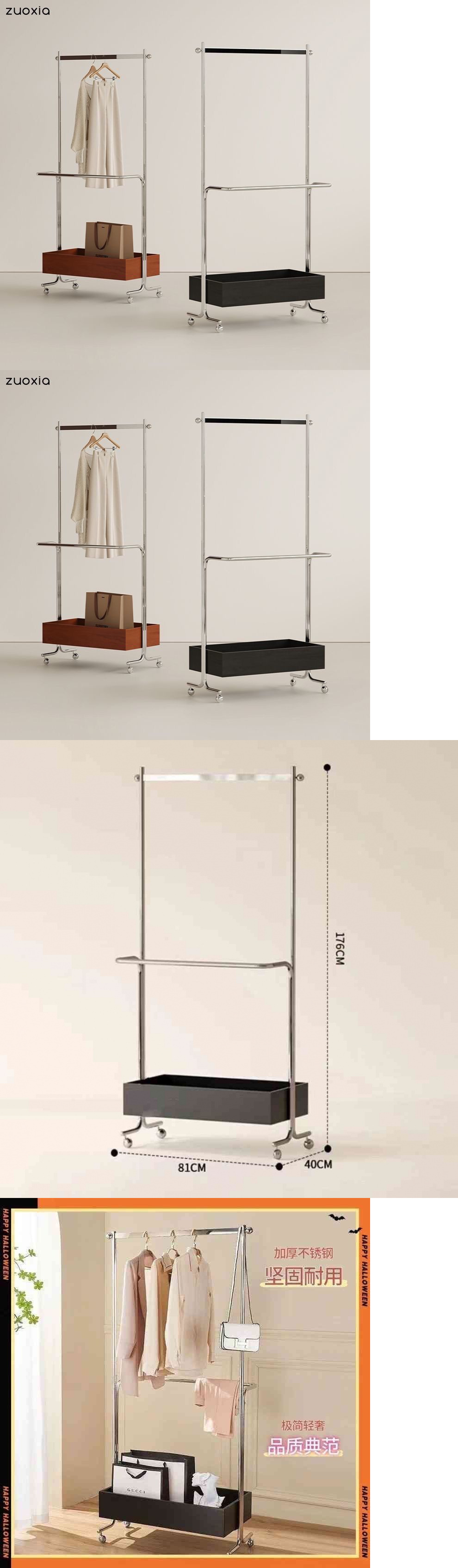 현대 중세 바닥 스탠딩 옷걸이 스테인레스 스틸 옷걸이 코트 랙 침실 모바일 의류 보관 코트 랙스토어 가기