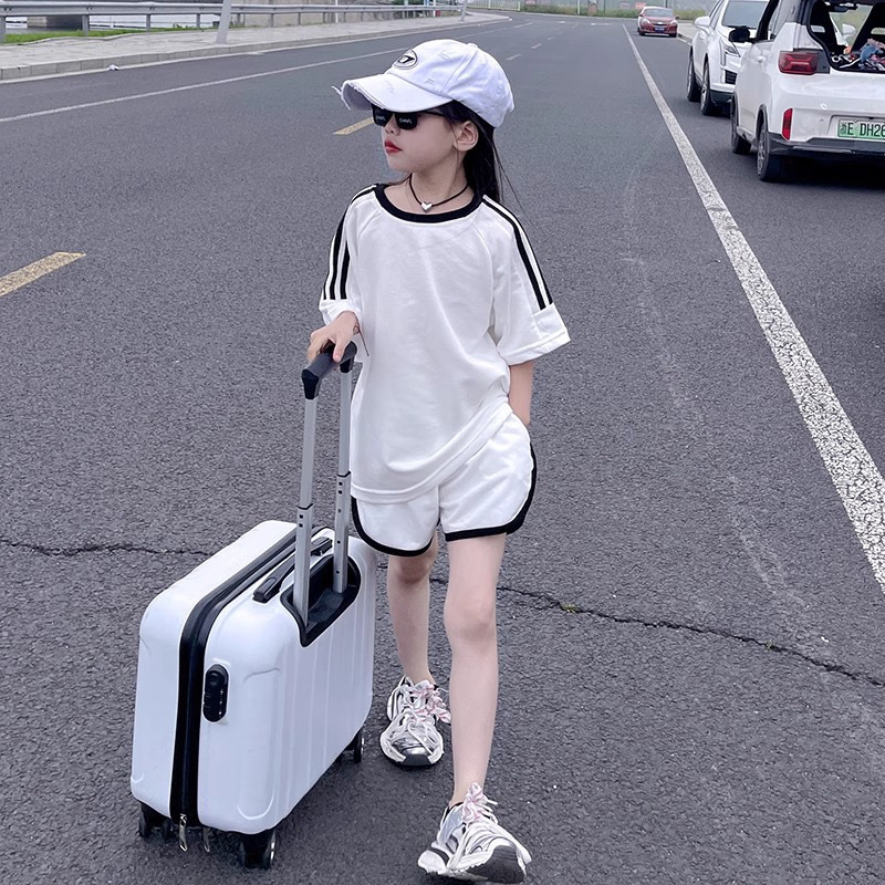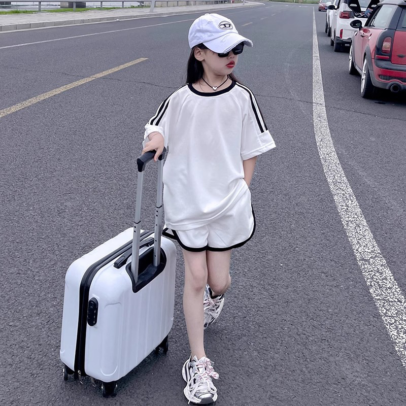 큰 어린이와 소녀를 위한 여아 여름 스포츠 슈트, 스타일리시하고 멋진 반팔 반바지, 아동용 여름 투피스 트렌디 세트스토어 가기