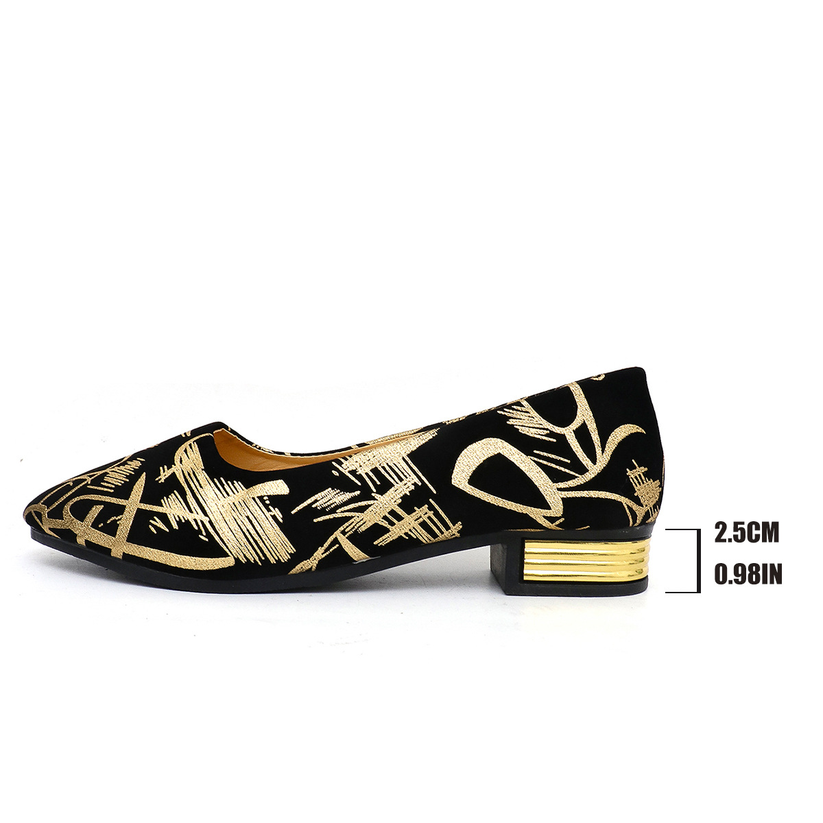 대외 무역 대형 두꺼운 굽 여성용 패션 신발 2025 봄 신작 뾰족한 발가락 얕은 입 대형 여성 신발-무작위 패턴