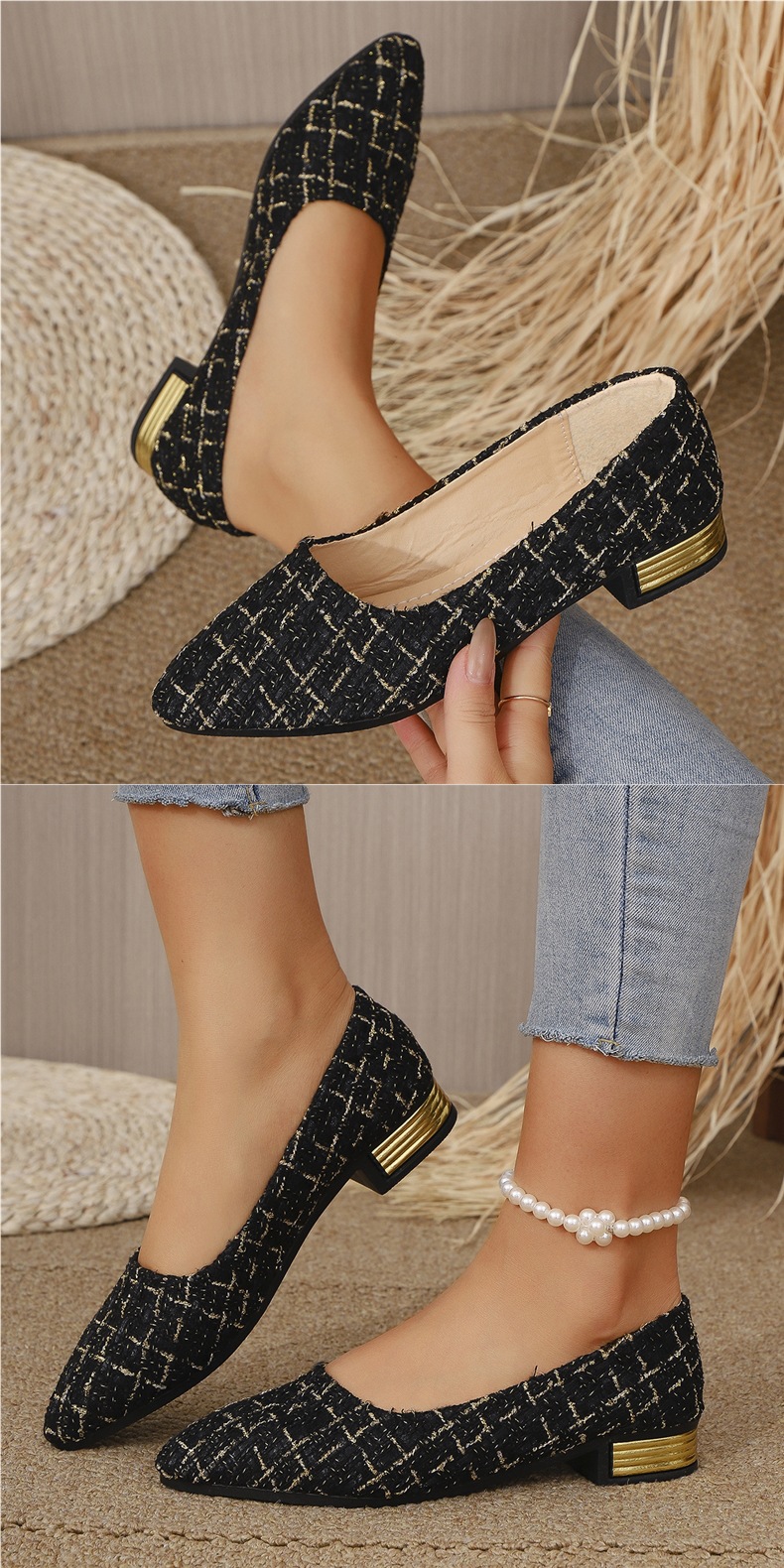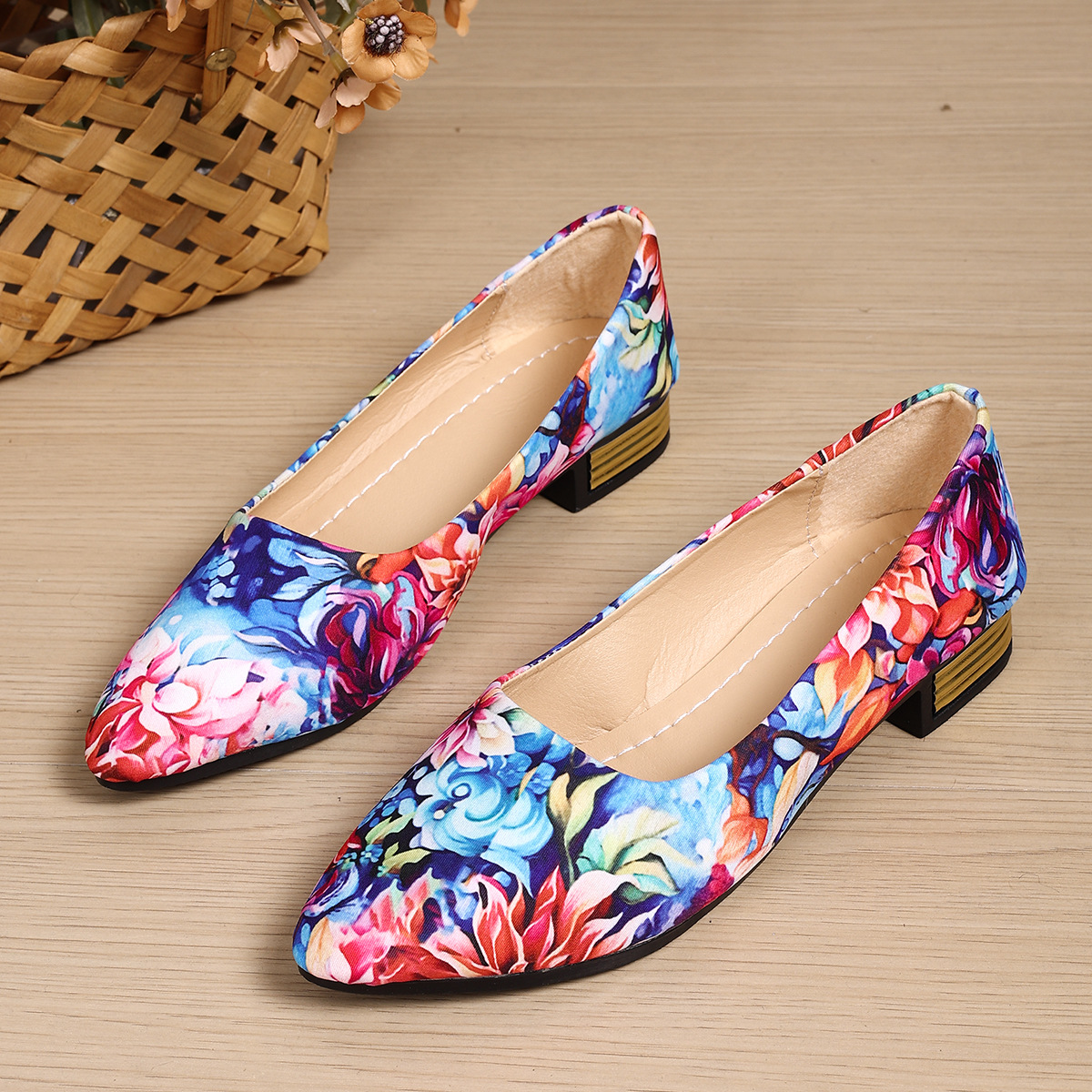 대외 무역 대형 두꺼운 굽 여성용 패션 신발 2025 봄 신작 뾰족한 발가락 얕은 입 대형 여성 신발-무작위 패턴스토어 가기