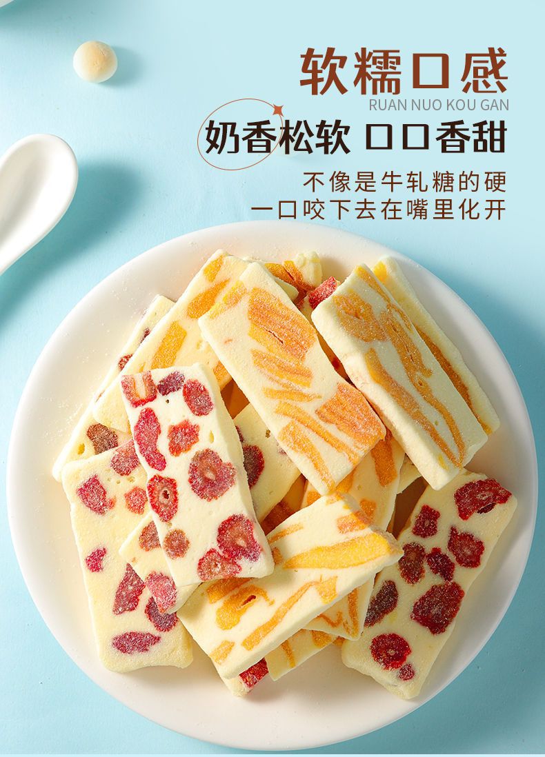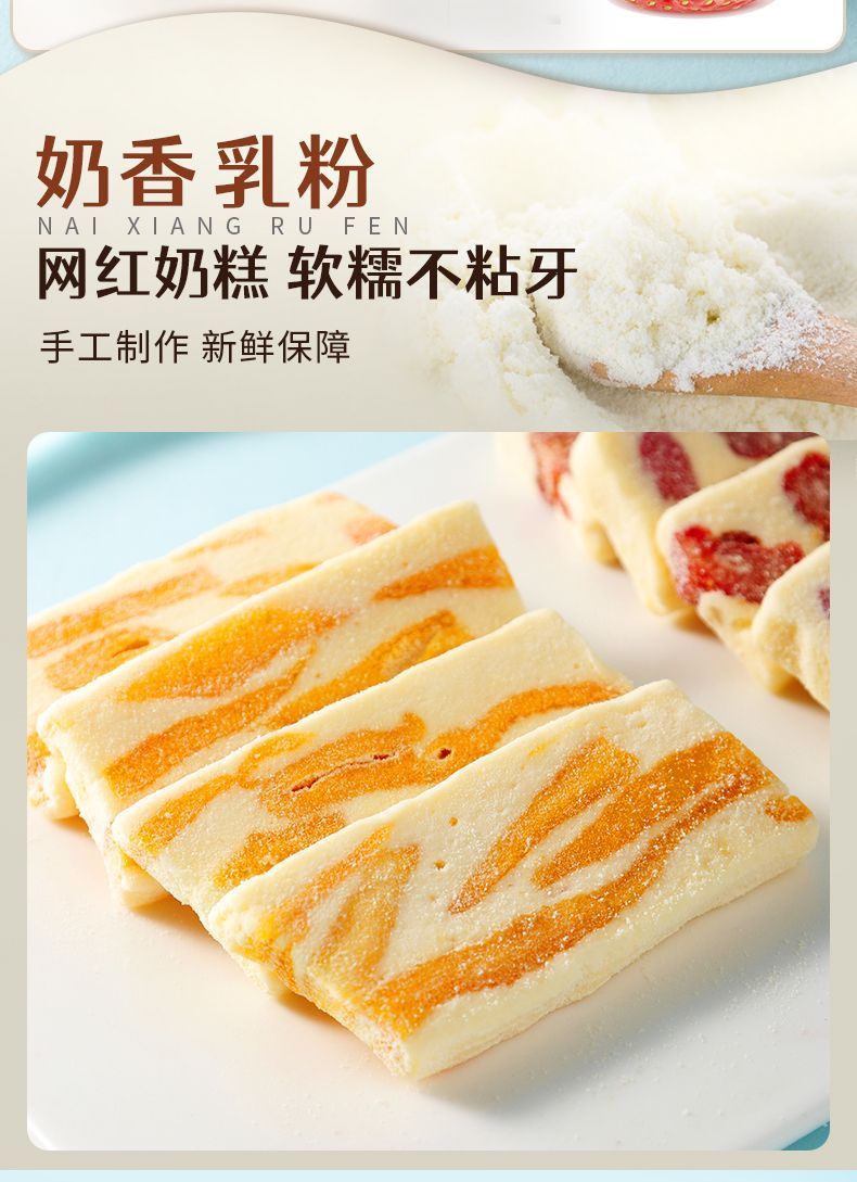 딸기/망고 밀크 케이크 두 가지 맛을 혼합하여 전통 수제 찰진 구미 사탕으로 사무실에서 간식으로 즐길 수 있습니다.