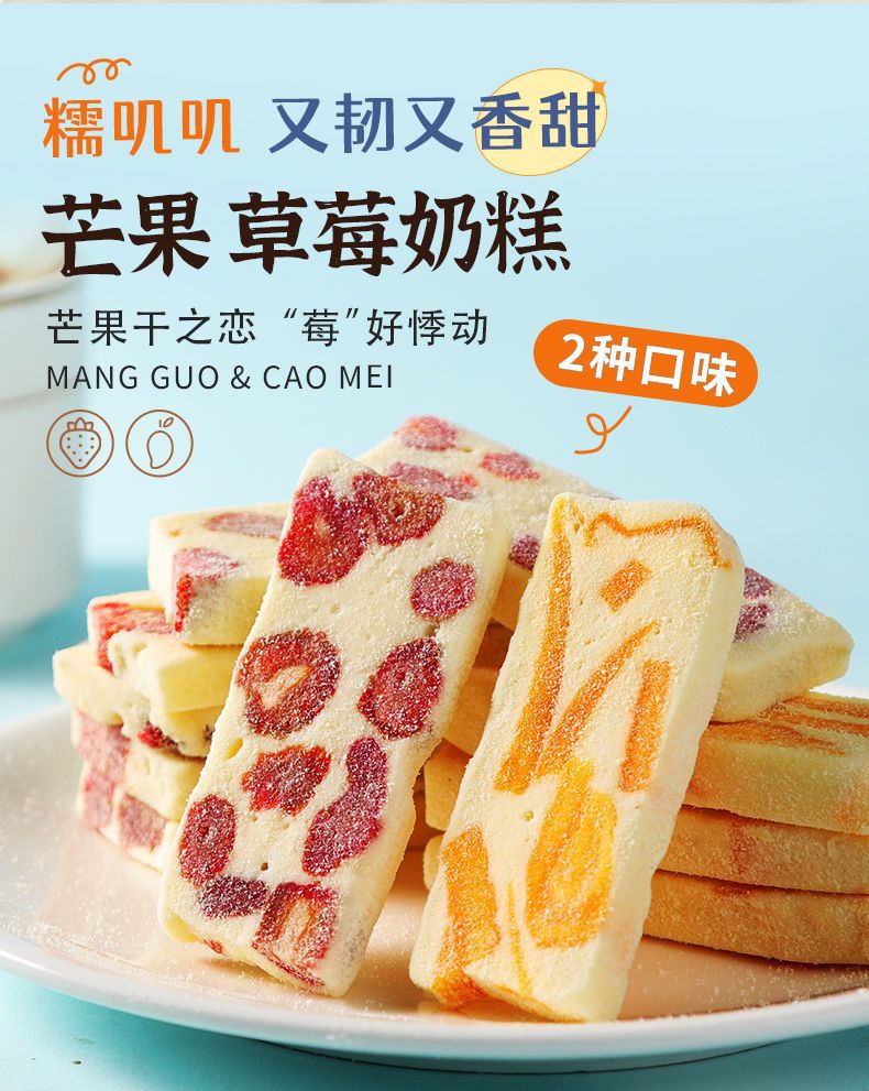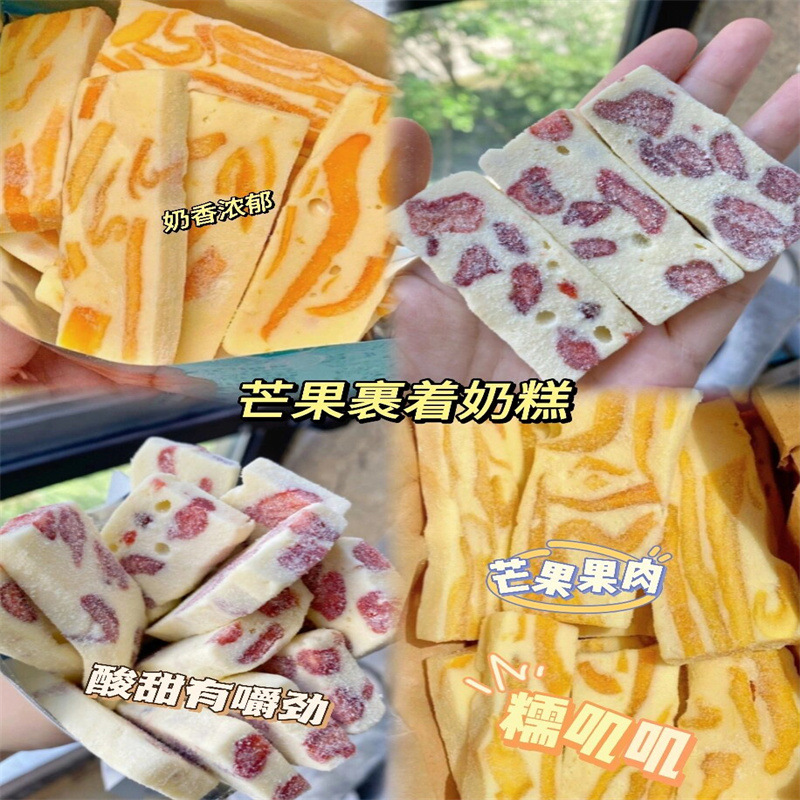 딸기/망고 밀크 케이크 두 가지 맛을 혼합하여 전통 수제 찰진 구미 사탕으로 사무실에서 간식으로 즐길 수 있습니다.스토어 가기