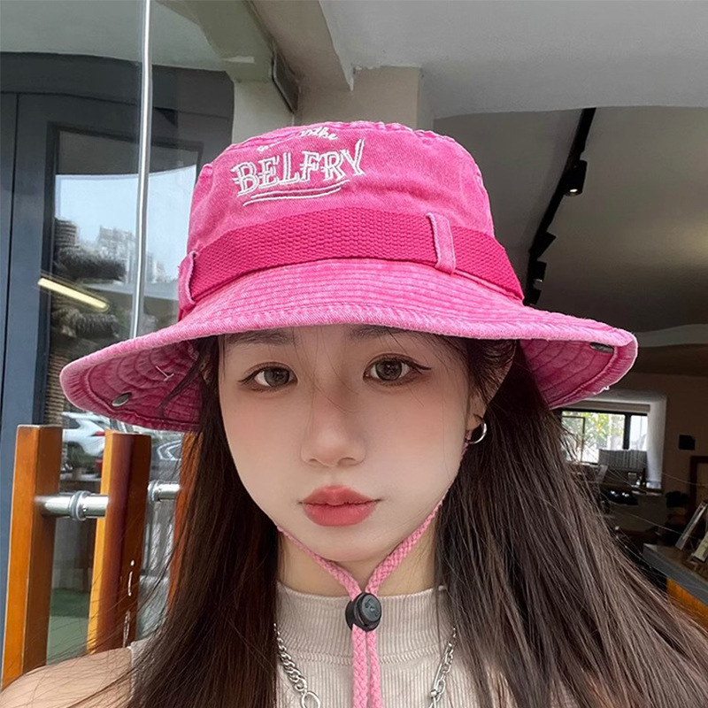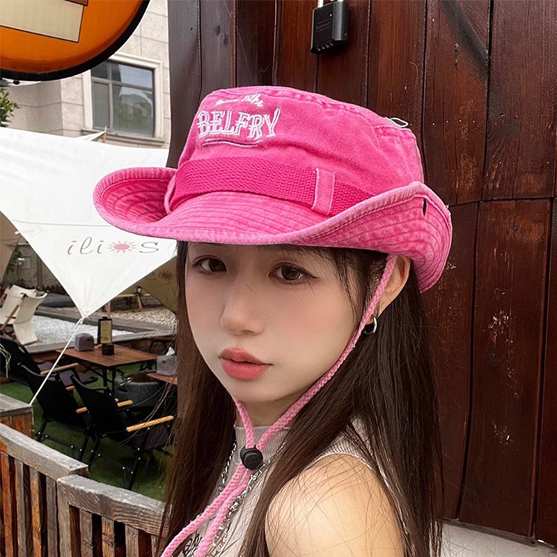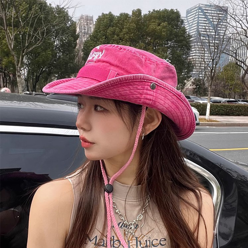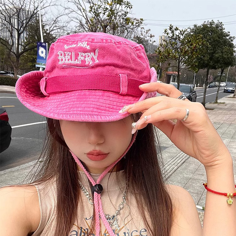 여성을위한 로즈 레드 레트로 야외 하이킹 모자 2025 봄 새로운 태양 보호 어부 모자 큰 머리 모자스토어 가기
