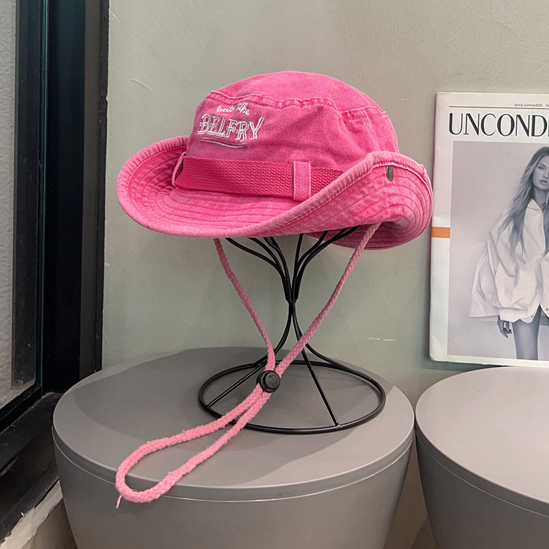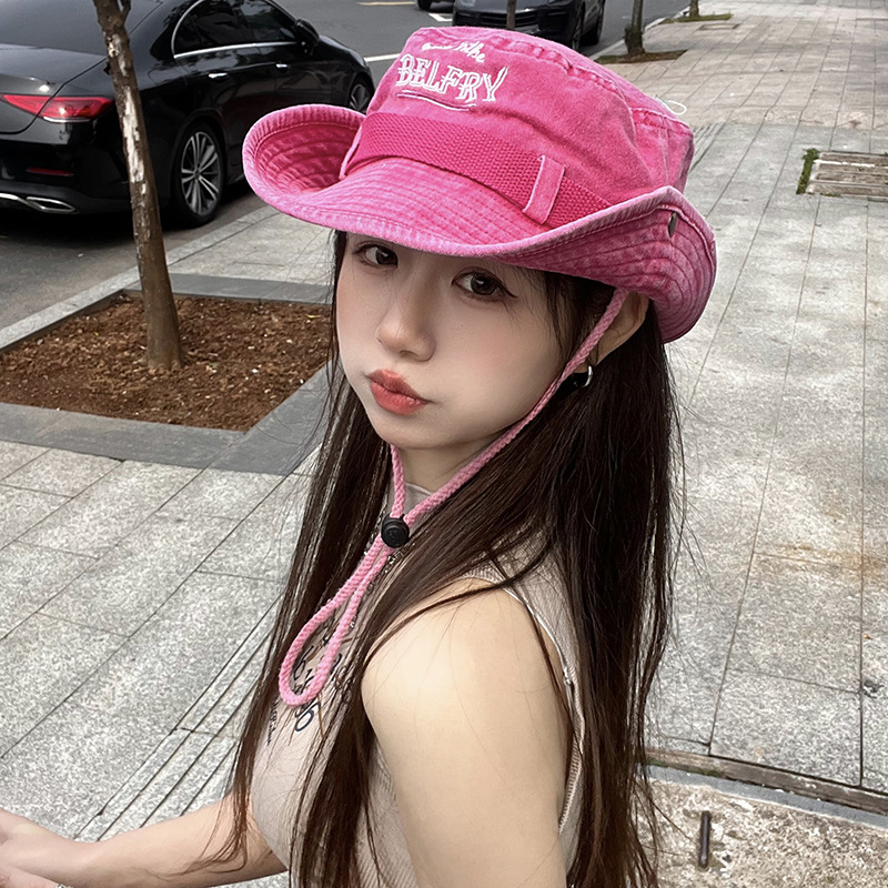 여성을위한 로즈 레드 레트로 야외 하이킹 모자 2025 봄 새로운 태양 보호 어부 모자 큰 머리 모자