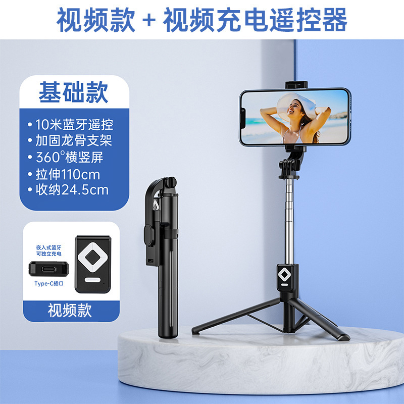 여행 휴대용 휴대 전화 셀카 스틱 접이식 텔레스코픽 블루투스 원격 제어 셀카 인공물 라이브 스트리밍 삼각대