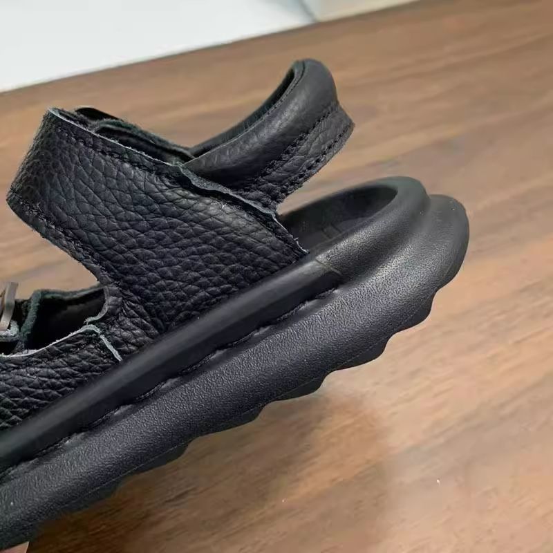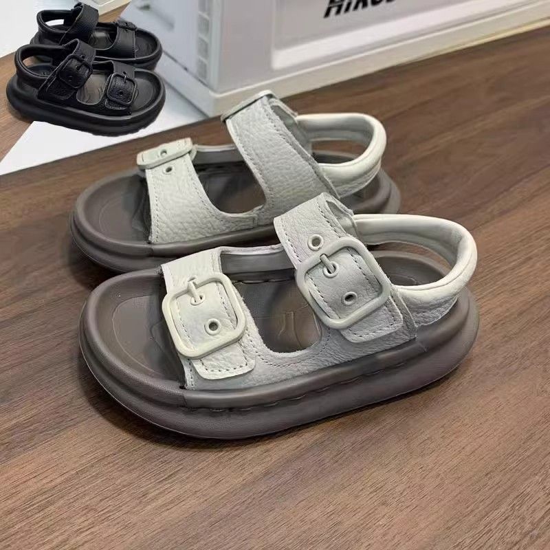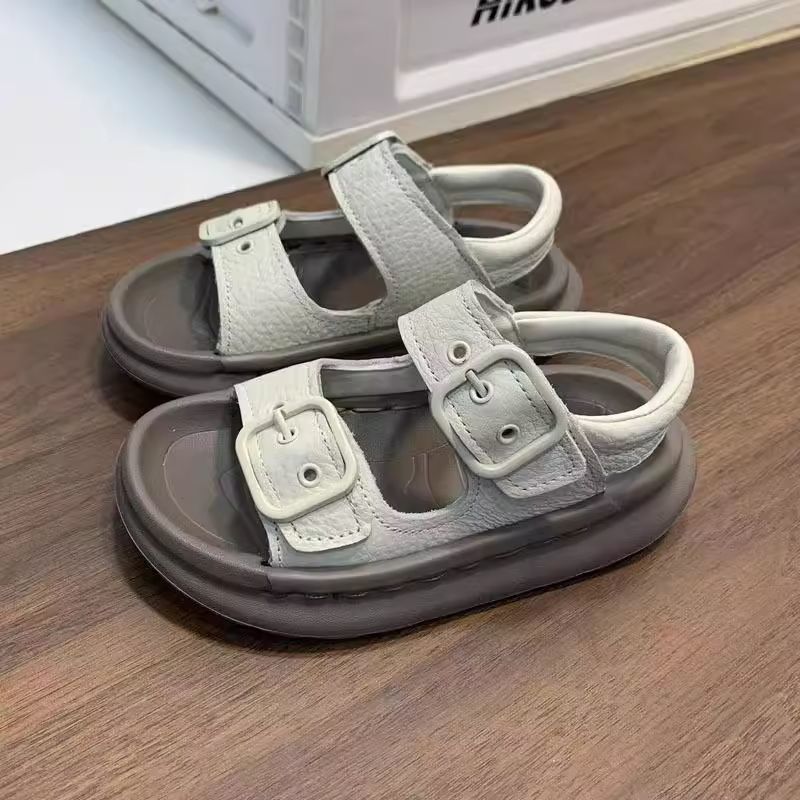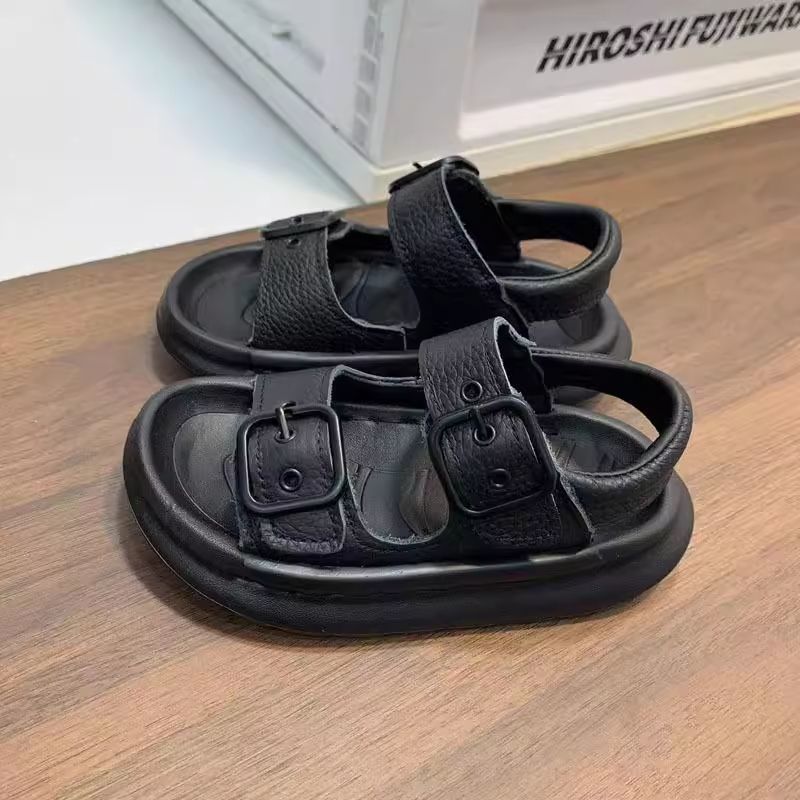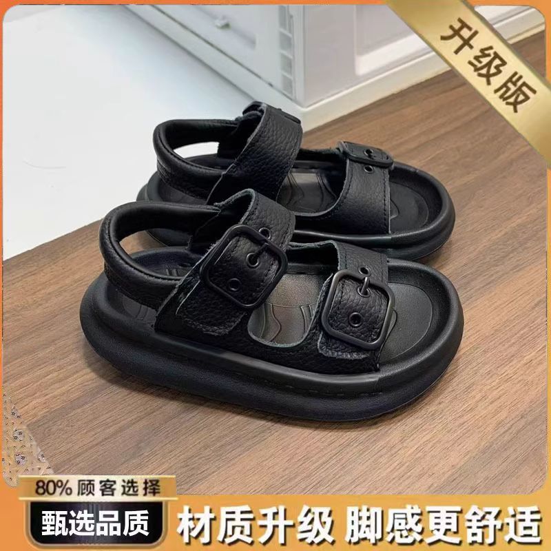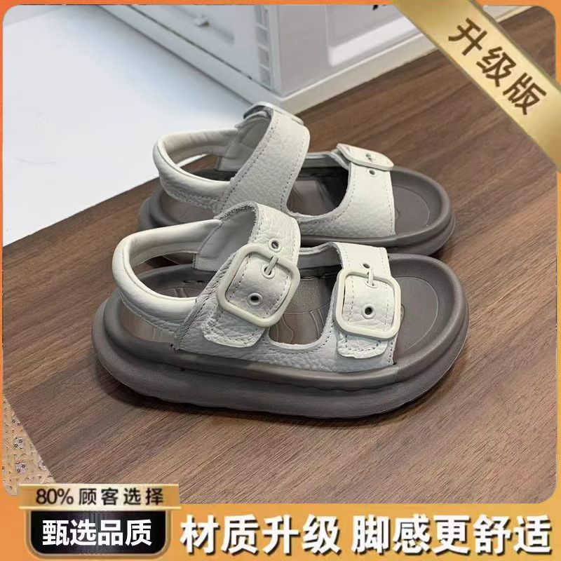 소년 샌들 2025 새로운 여름 부드러운 밑창 미끄럼 방지 가죽 샌들 벨크로 소녀 중대형 어린이 해변 신발