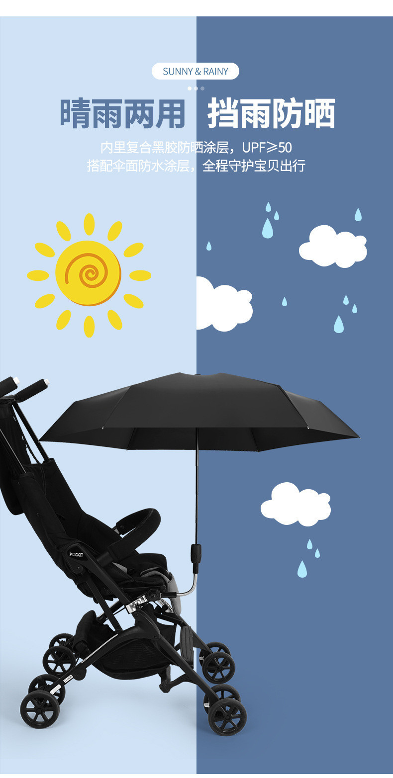 새로운 경량 아기 탈착식 유모차 우산 태양 보호 및 비오는 날 어린이 유모차 우산스토어 가기