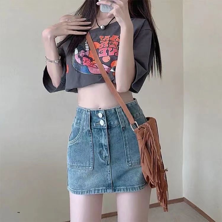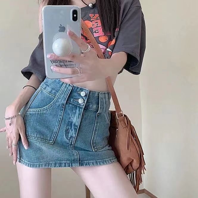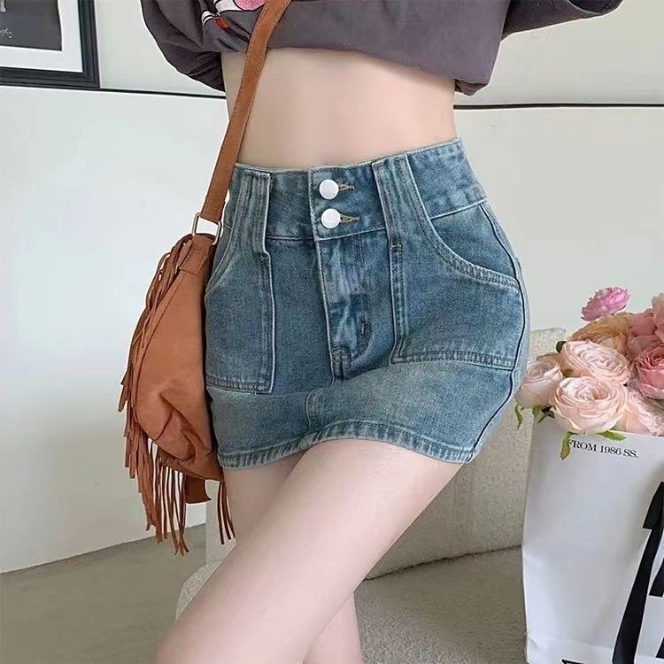 몸집이 작은 여성과 핫한 소녀들을 위한 데님 스커트, 니치 디자인, 하이웨이스트, 힙 커버, 짧은 스커트, 초짧은 스커트스토어 가기