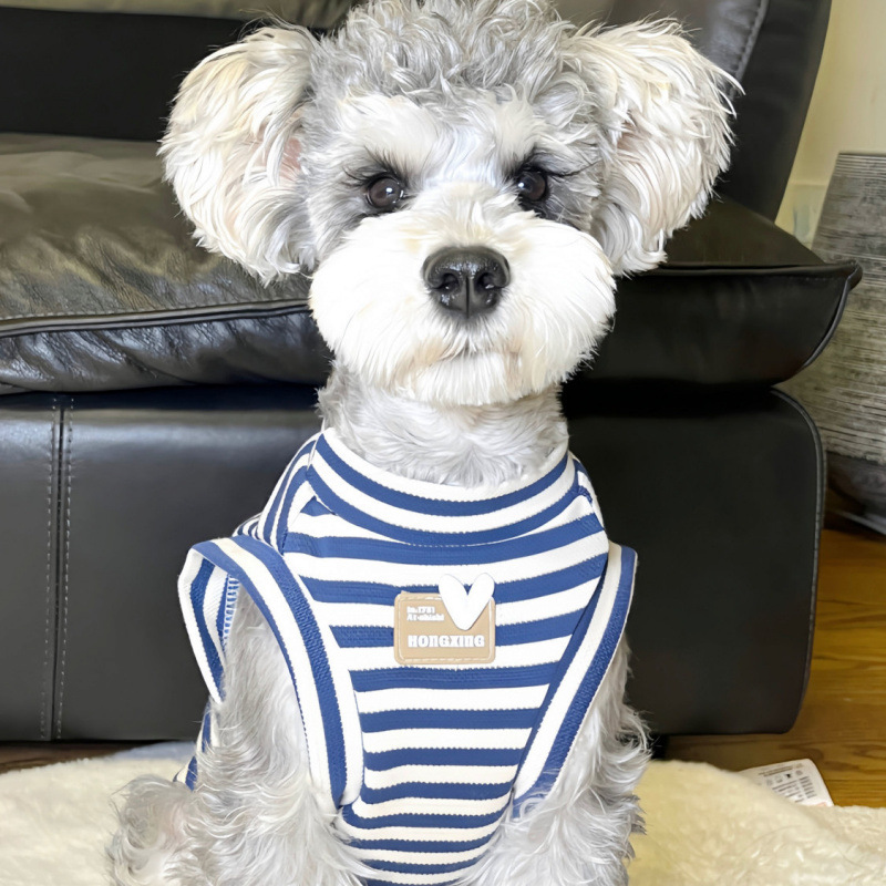애완 동물 고양이와 개 옷 여름 흑백 줄무늬 민소매 조끼 실내 탈모 방지 슈나우저 시바견 중소형 개스토어 가기