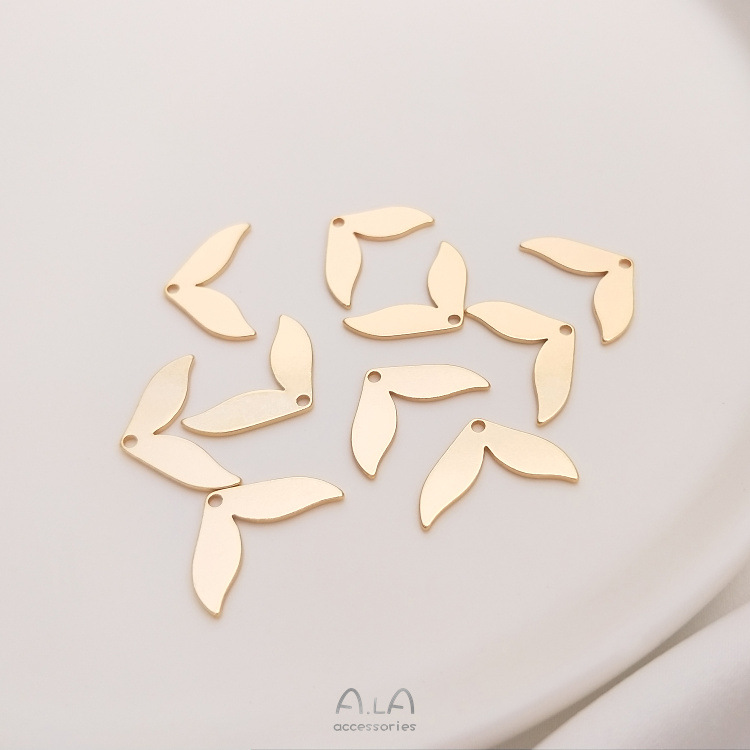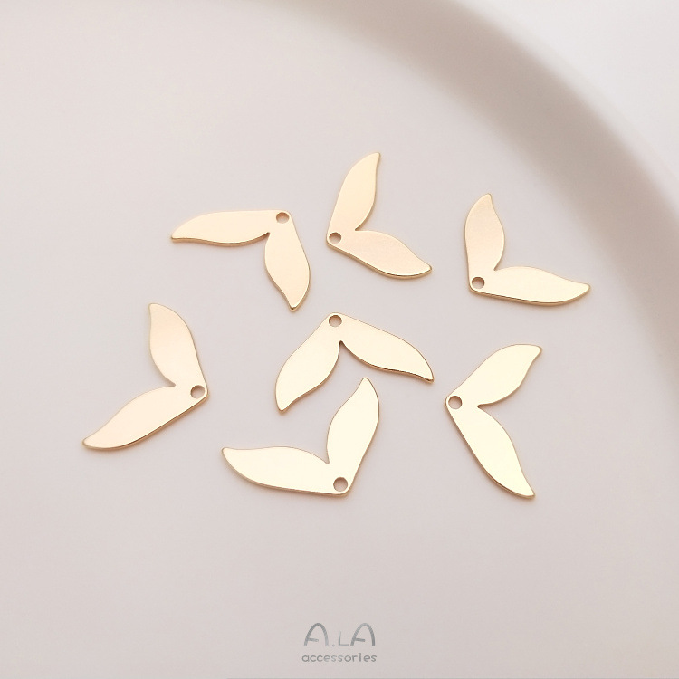 도매 펜던트 액세서리, 구리에 14K 진짜 금 도금, 색상 유지 인어 꼬리 고래 꼬리 펜던트, DIY 쥬얼리 귀걸이 펜던트스토어 가기