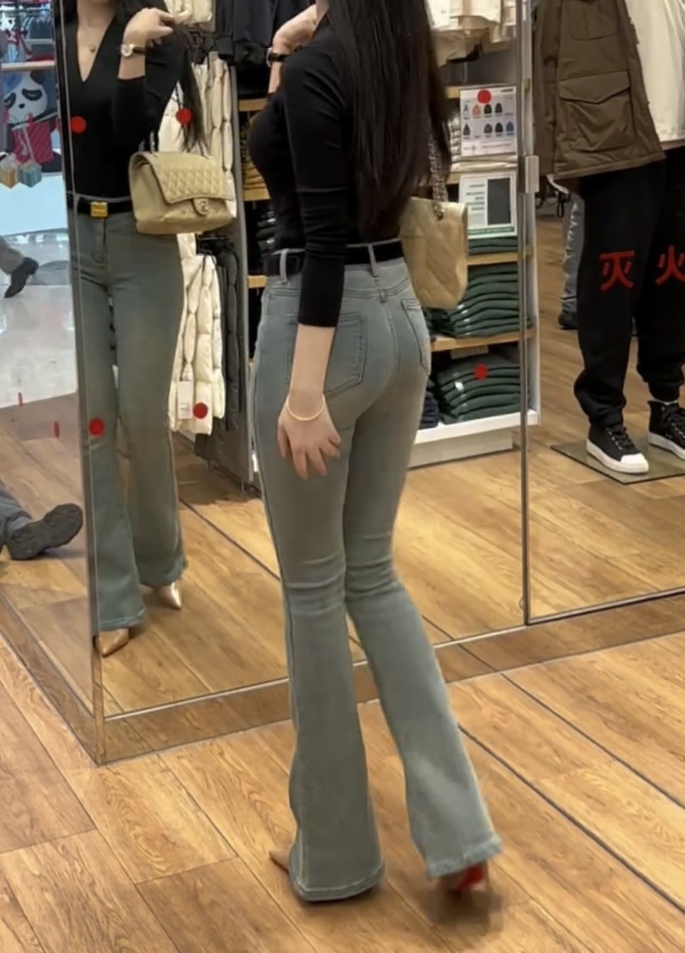 2025 봄 여성용 하이웨이스트 패셔너블하고 다재다능한 신축성 있는 마이크로 플레어 청바지 레트로 라이트 컬러 슬리밍 플레어 바지스토어 가기
