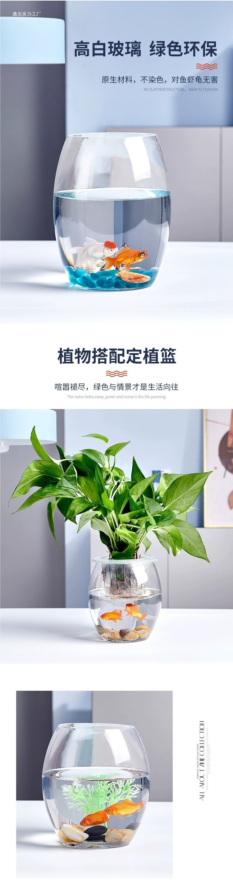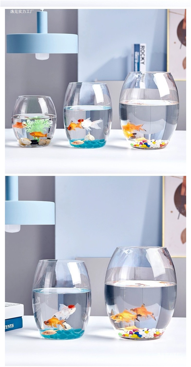 사무실 작은 물고기 탱크 두꺼운 투명 유리 거북이 탱크 거실 홈 데스크탑 라운드 미니 작은 금붕어 탱크스토어 가기