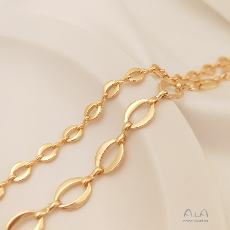 체인 체인 도매 한국산 두꺼운 구리 14K 금도금 두꺼운 프레임 대형 O자형 체인 DIY 목걸이 팔찌 장신구 체인스토어 가기