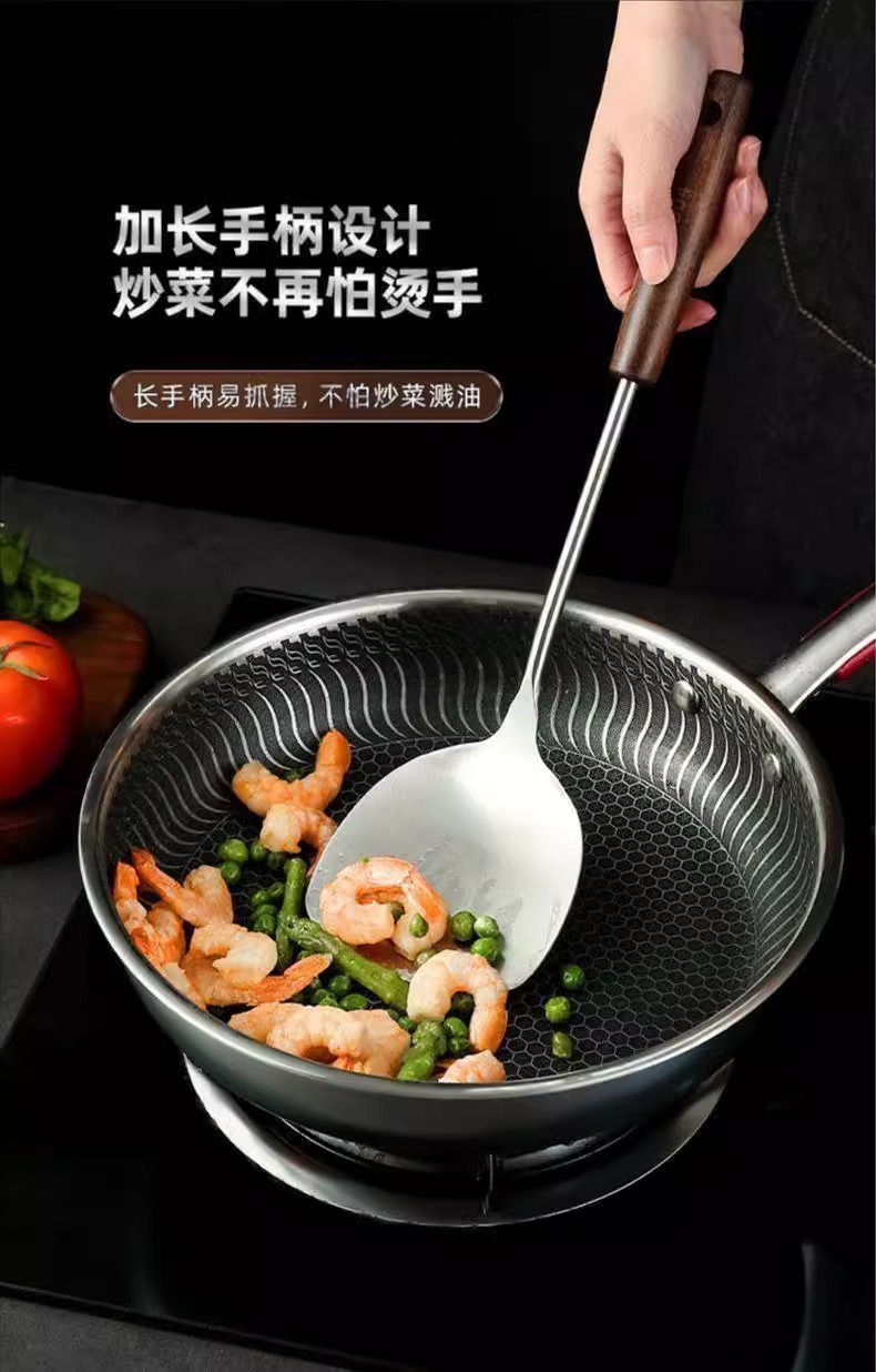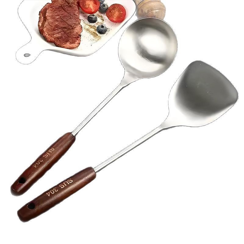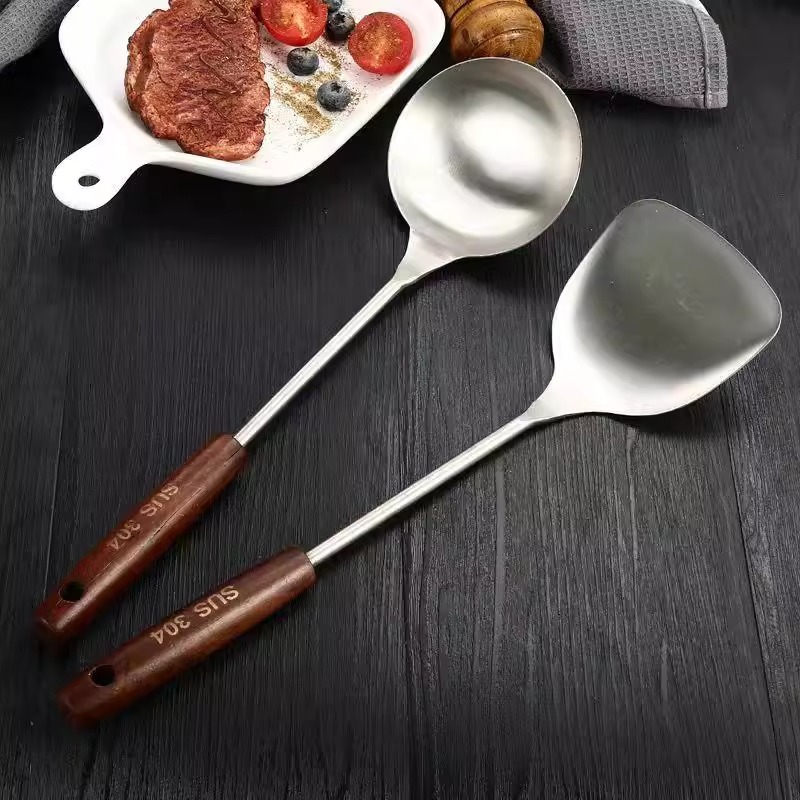 스테인레스 스틸 골동품 나무 손잡이 요리 주걱, 주걱, 수프 스푼, 가정용 주방 요리 주걱, 요리사 특수 주방 용품