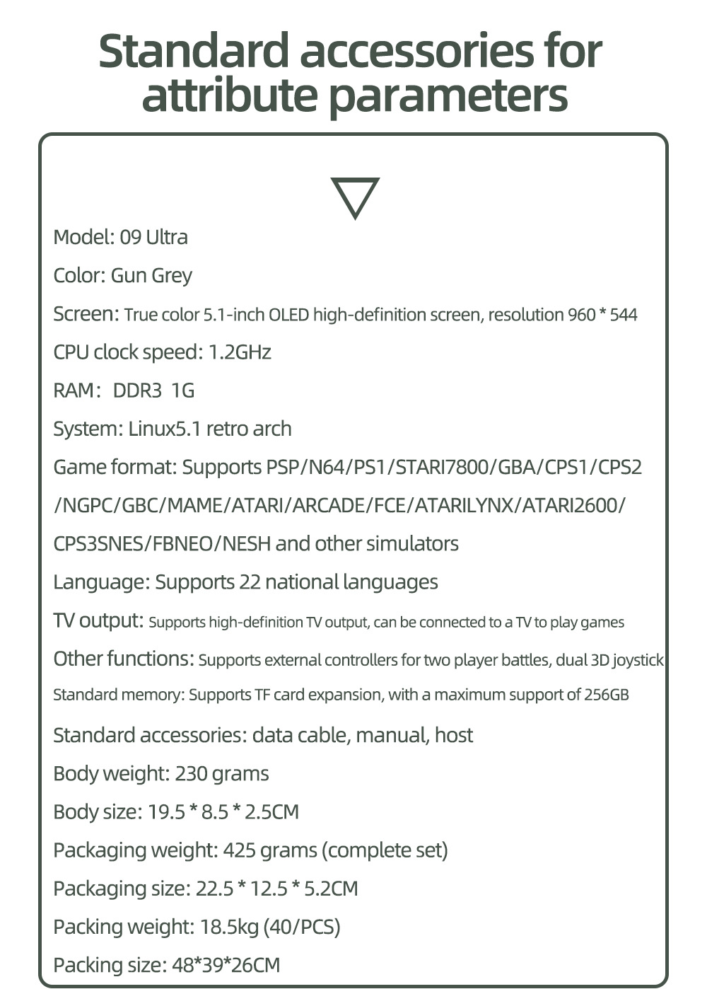 09 Ultra 새로운 휴대용 게임 콘솔 수평 버전 휴대용 SUP 더블 로커 TV에 연결된 복고풍 휴대용 아케이드스토어 가기