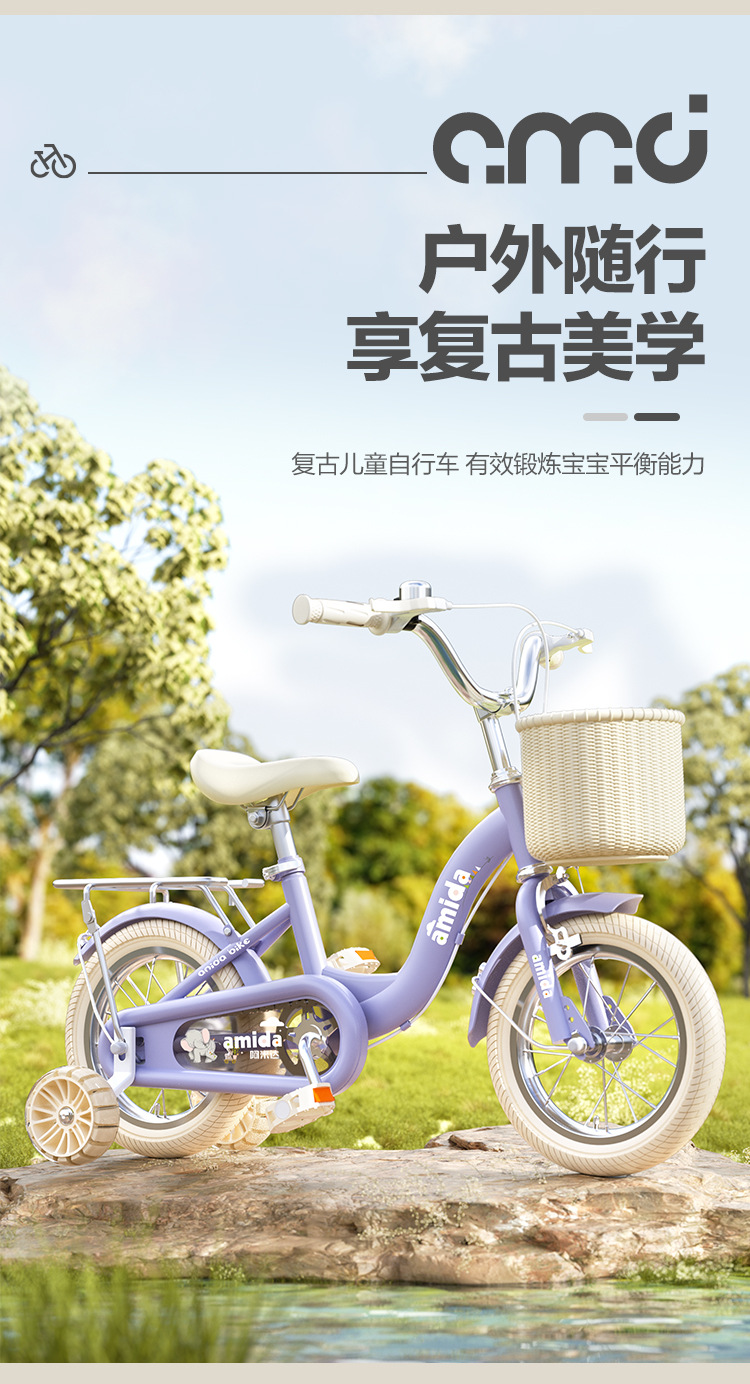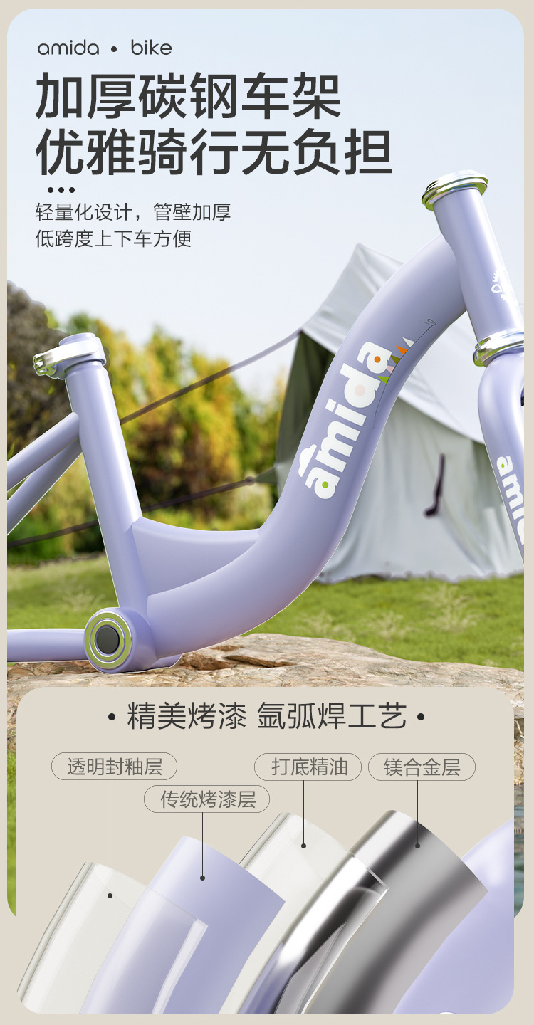 • 클래식 모델 (보라색) 검정색 타이어 일반 휠 + 뒷좌석 + 선물 가방 + 지지대