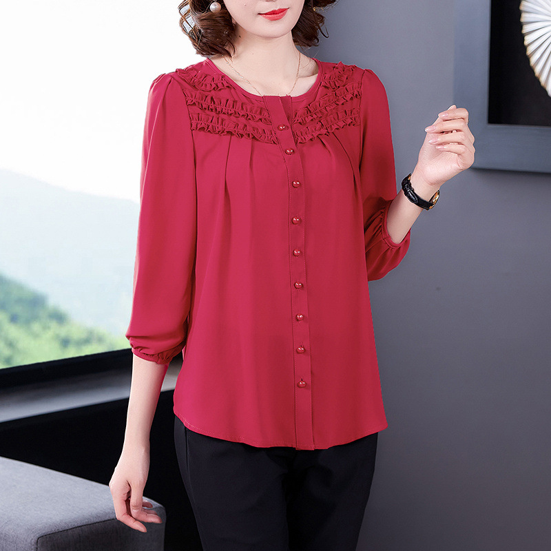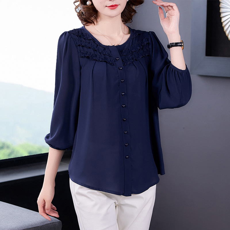 여성용 루즈한 플러스 사이즈 쉬폰 셔츠 2025 봄, 가을 새로운 스타일 9부 소매 배를 덮는 세련된 긴팔 카디건 엄마 탑스토어 가기